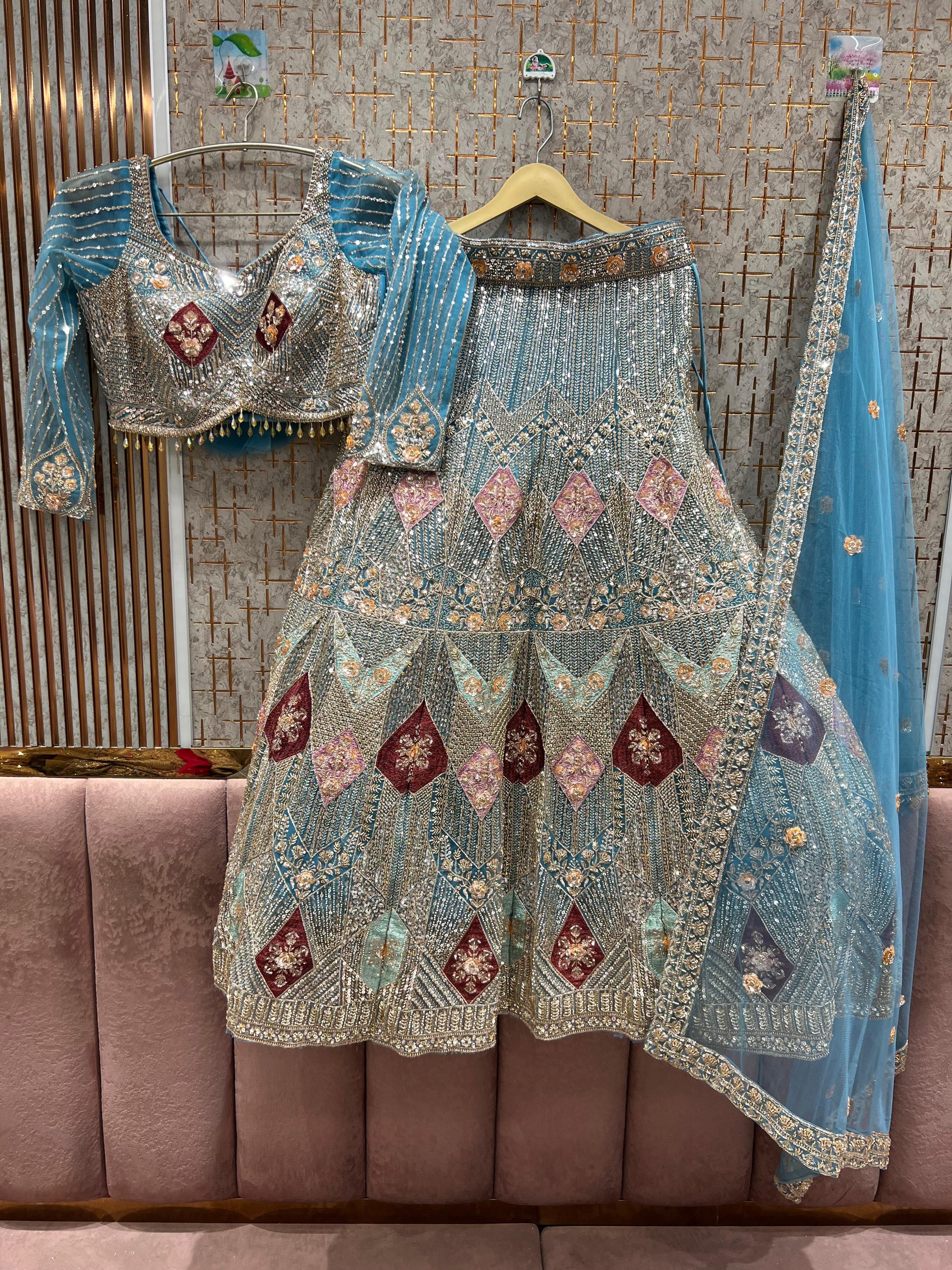 - ₹25,000 – ₹50,000: Premium partywear lehengas with intricate craftsmanship
