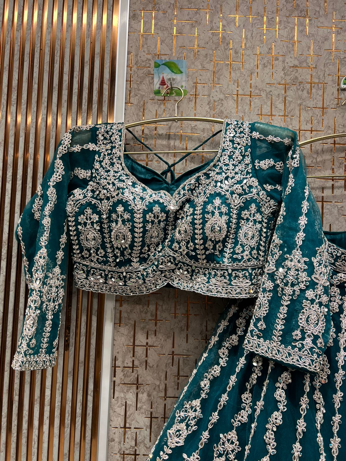 Attractive pista green peacock crop top Lehenga Happy Customer