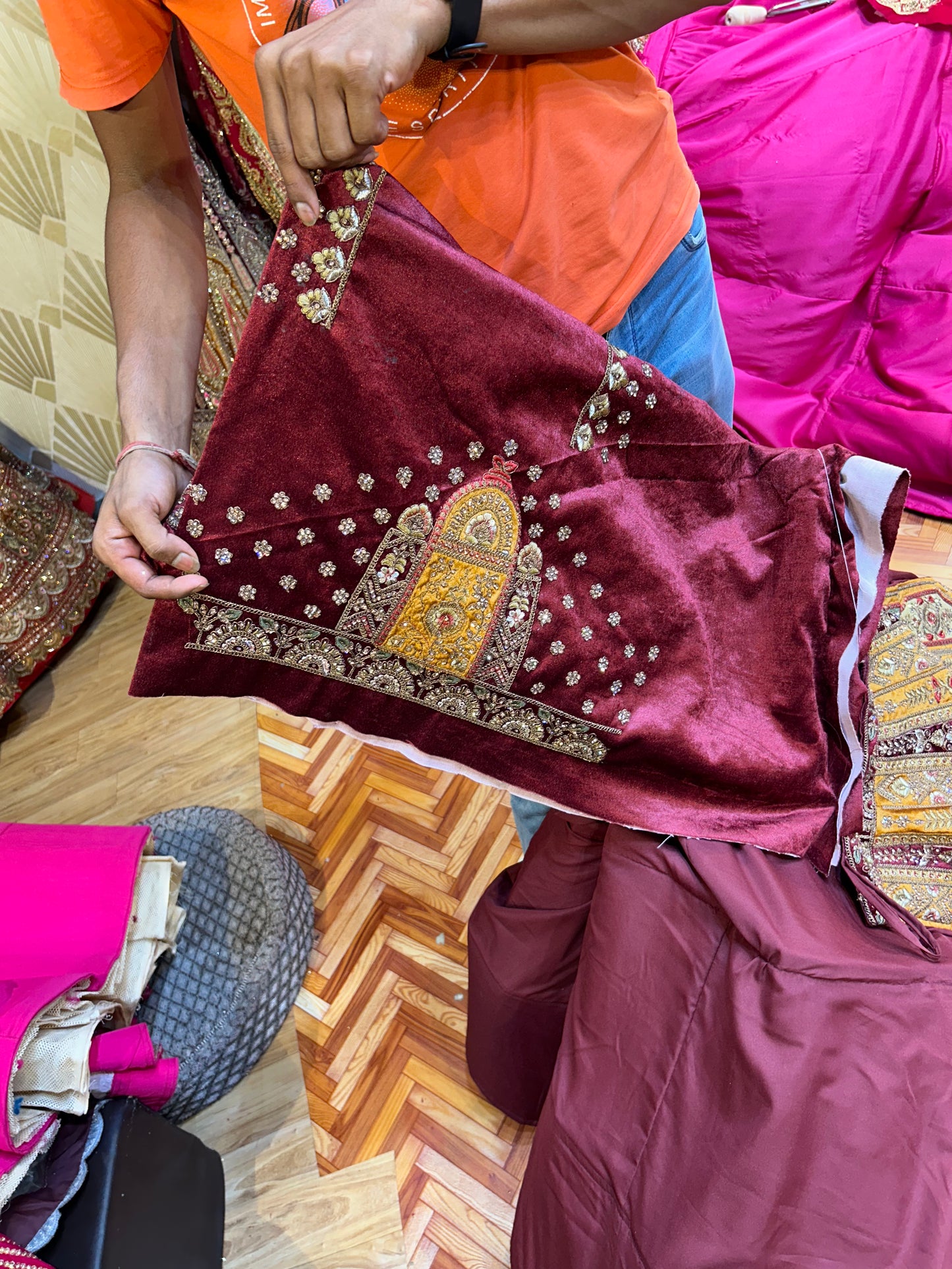 Designer jhumka Maroon bridal lehenga ( happy customer)
