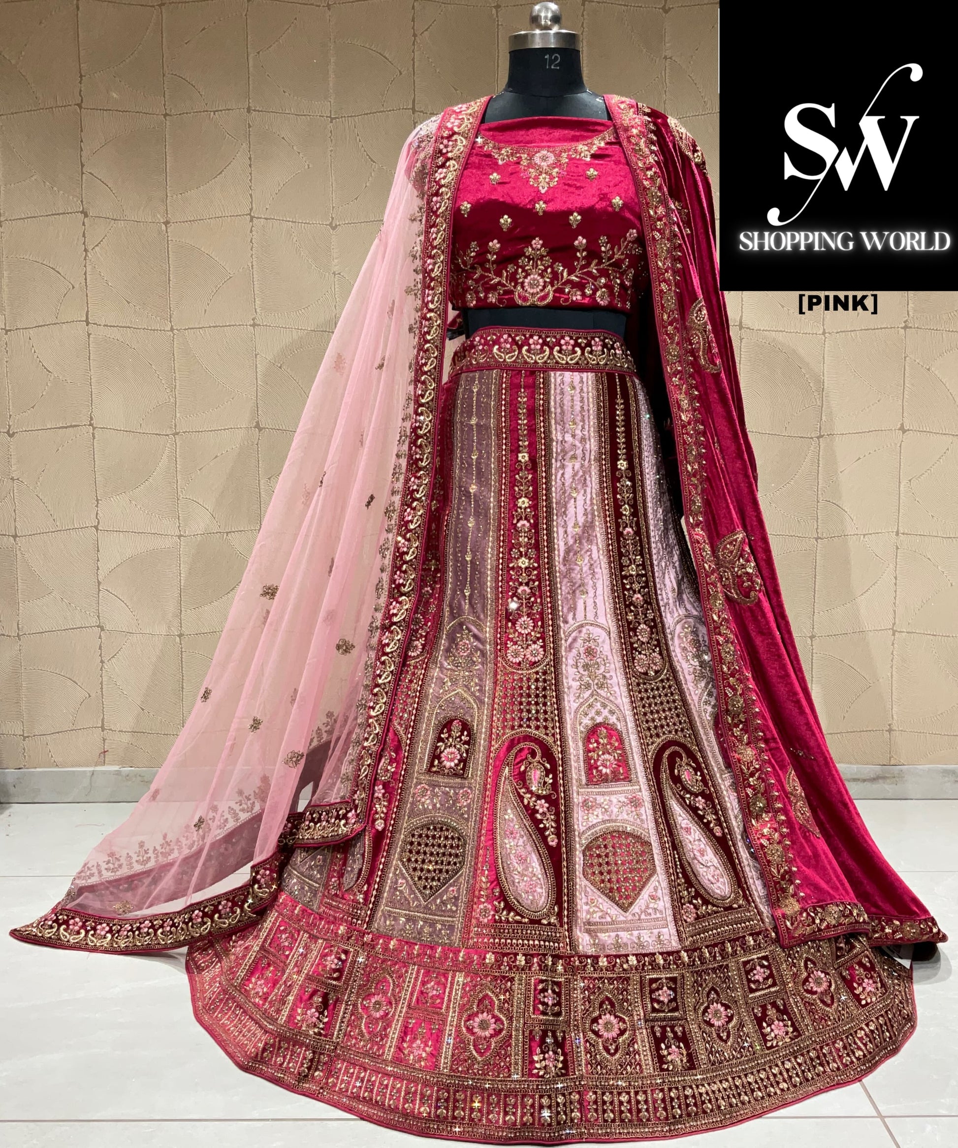 Lovely maroon pink double duptta bridal lehenga