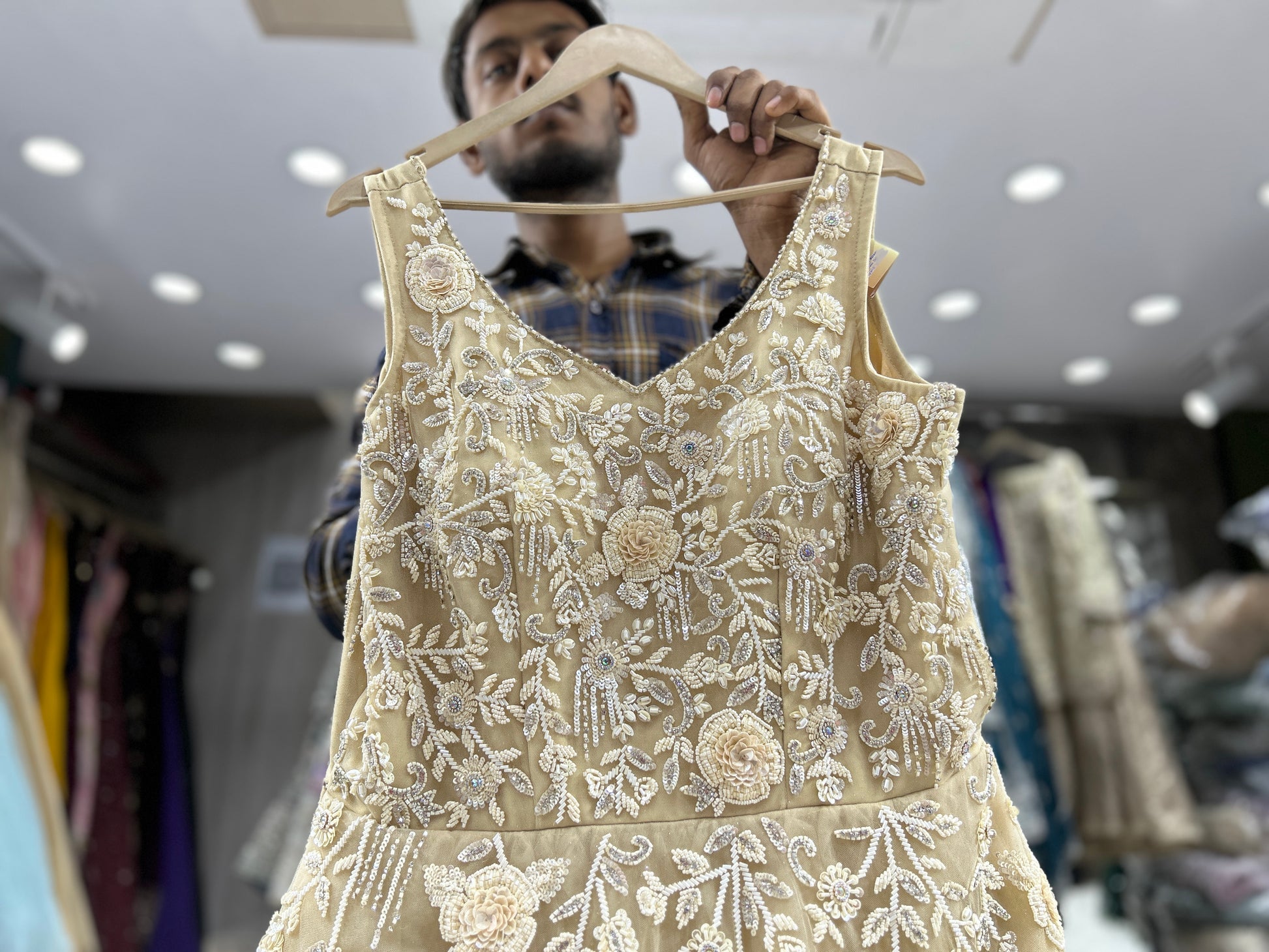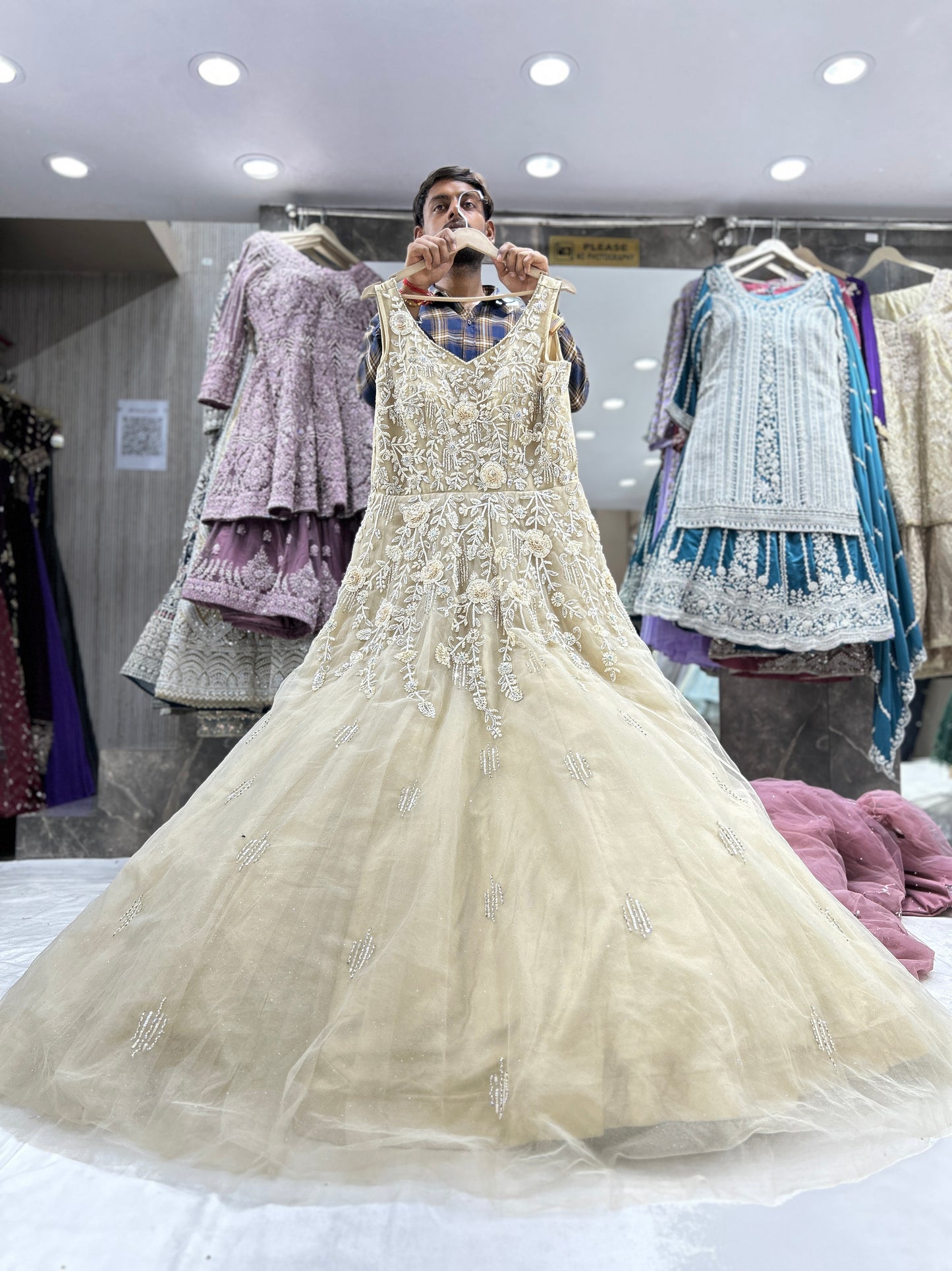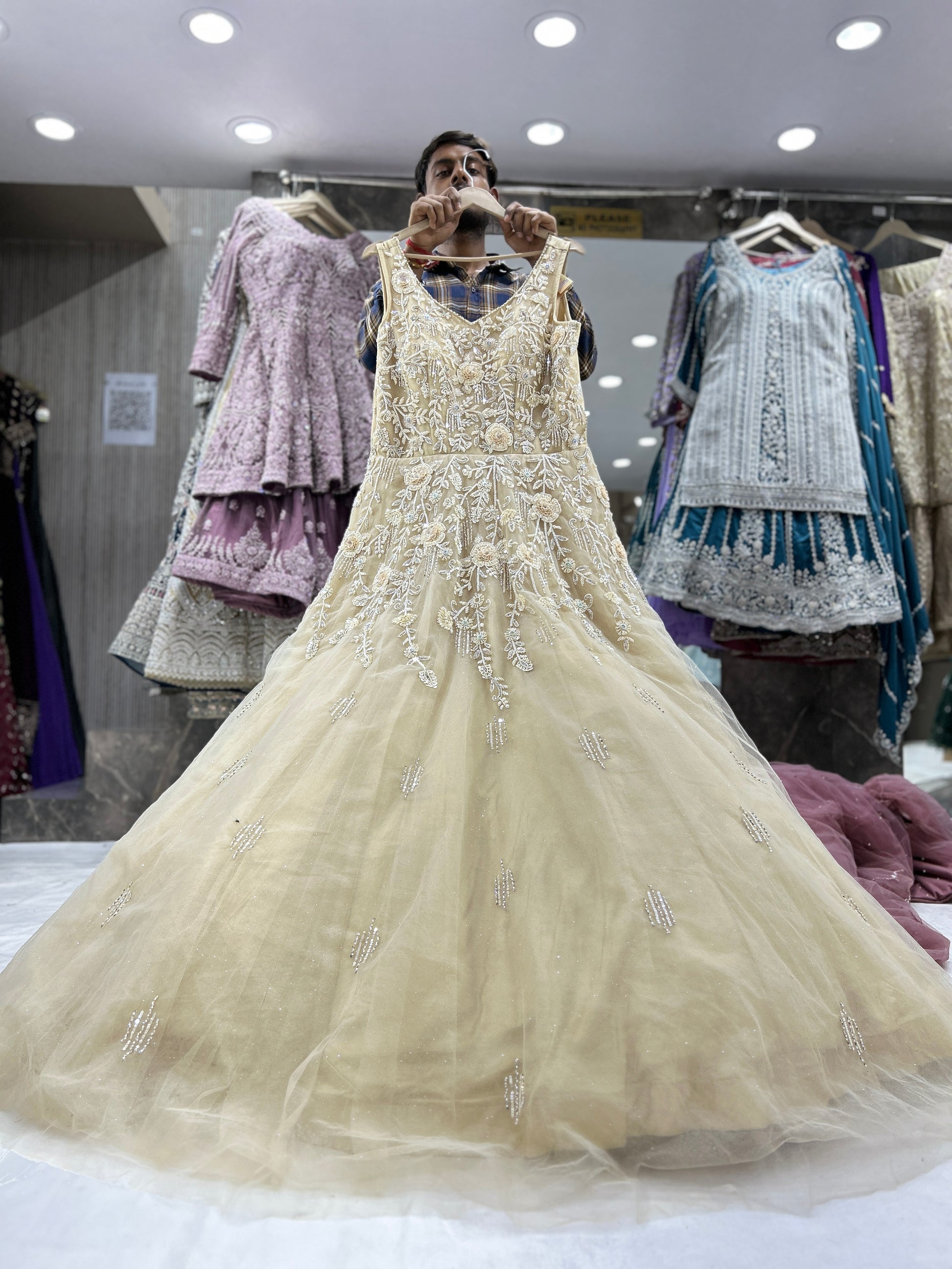 - ₹10,000 – ₹15,000: Glamorous gowns with detailed embroidery and embellishments