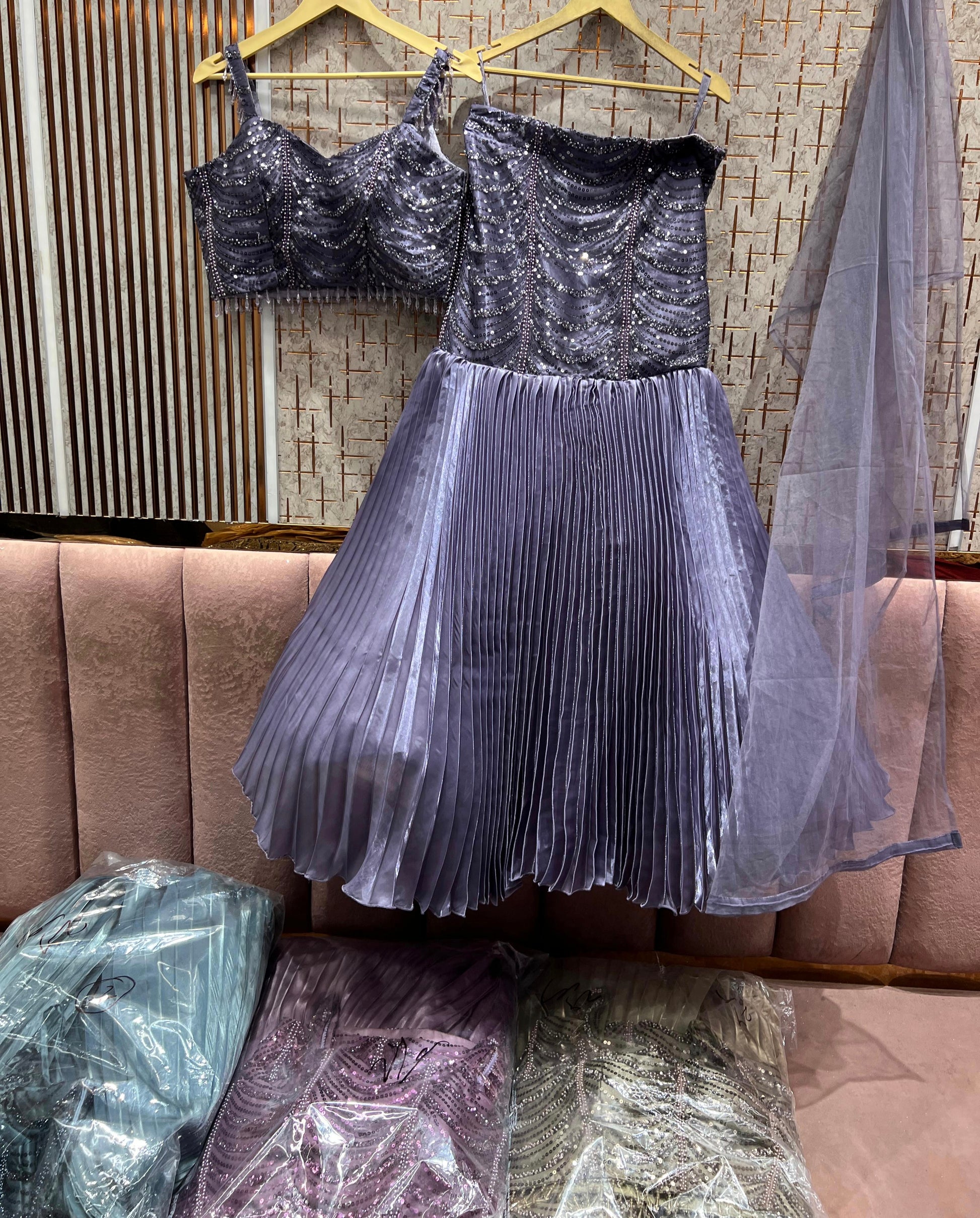 Lovely purple fish cut Ready to wear Crop Top Lehenga