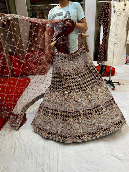 Designer jhumka Maroon bridal lehenga ( happy customer)
