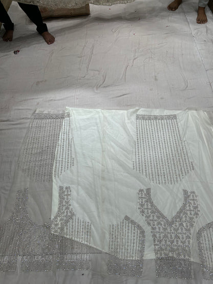 Use our custom stitching service. Submit your measurements and our skilled team will tailor the outfit to your perfect fit.
