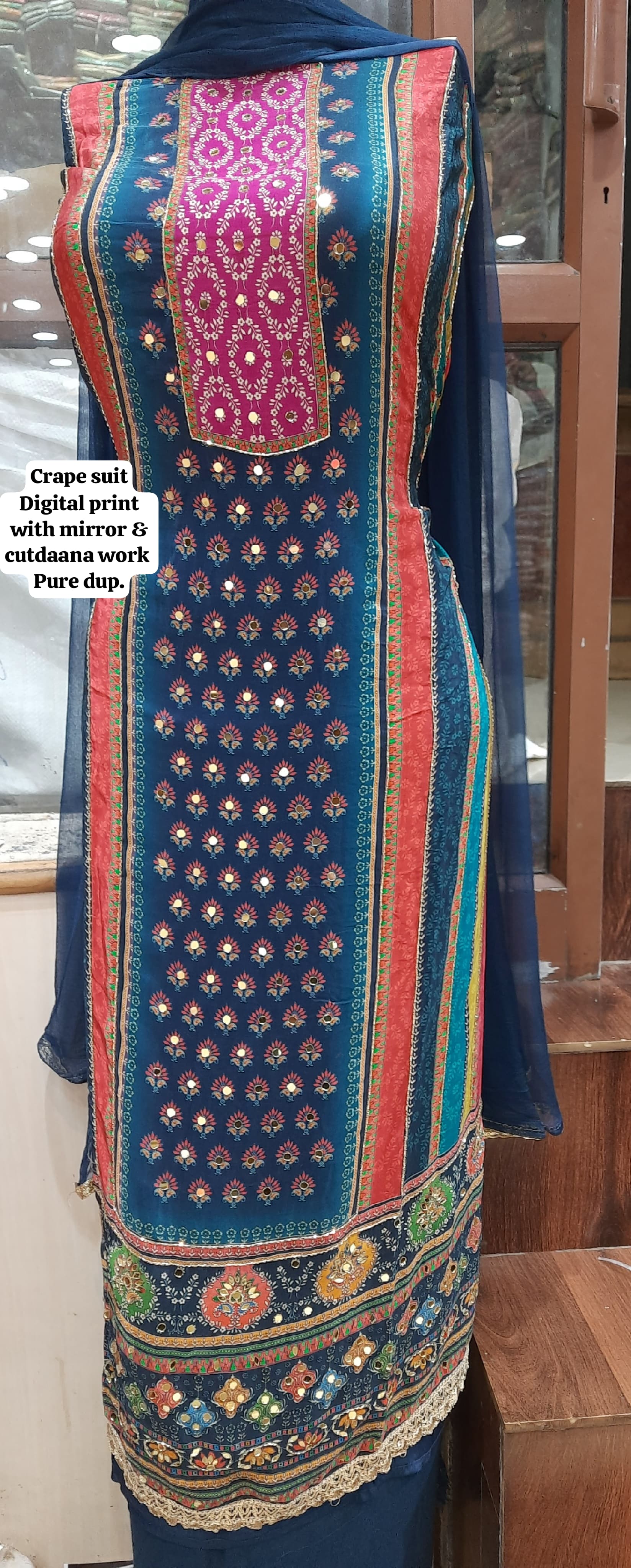 Majestic dark blue crape ladies women's unstitched Salwar suits dress material (free size)