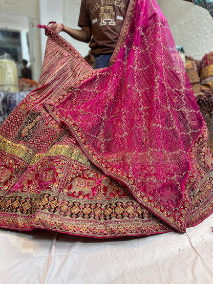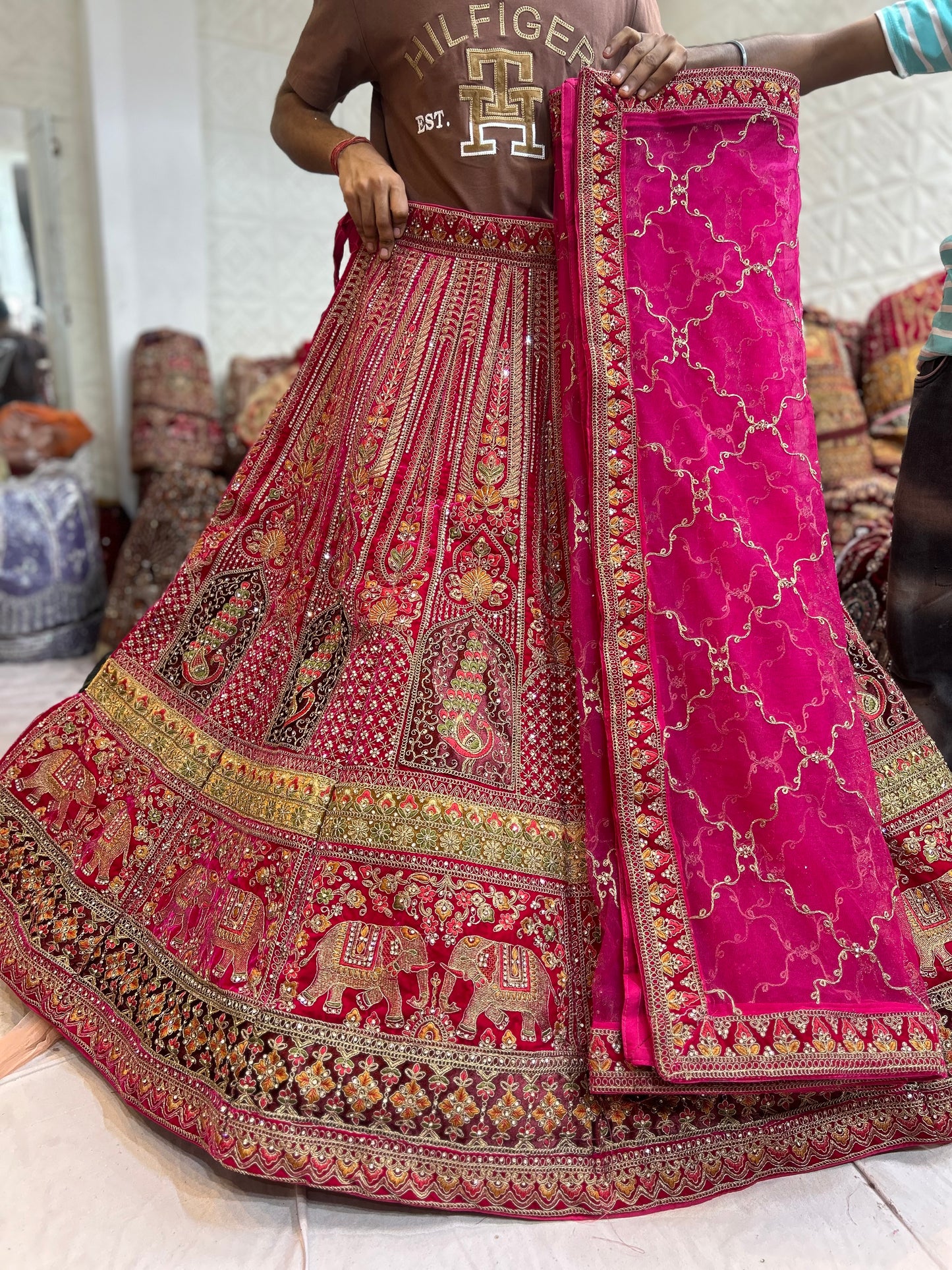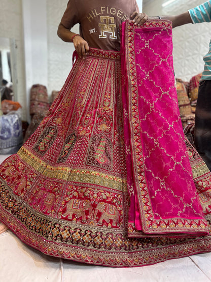 Glamorous Rani pink peacock Double dupatta Silk Bridal Lehenga happy customer