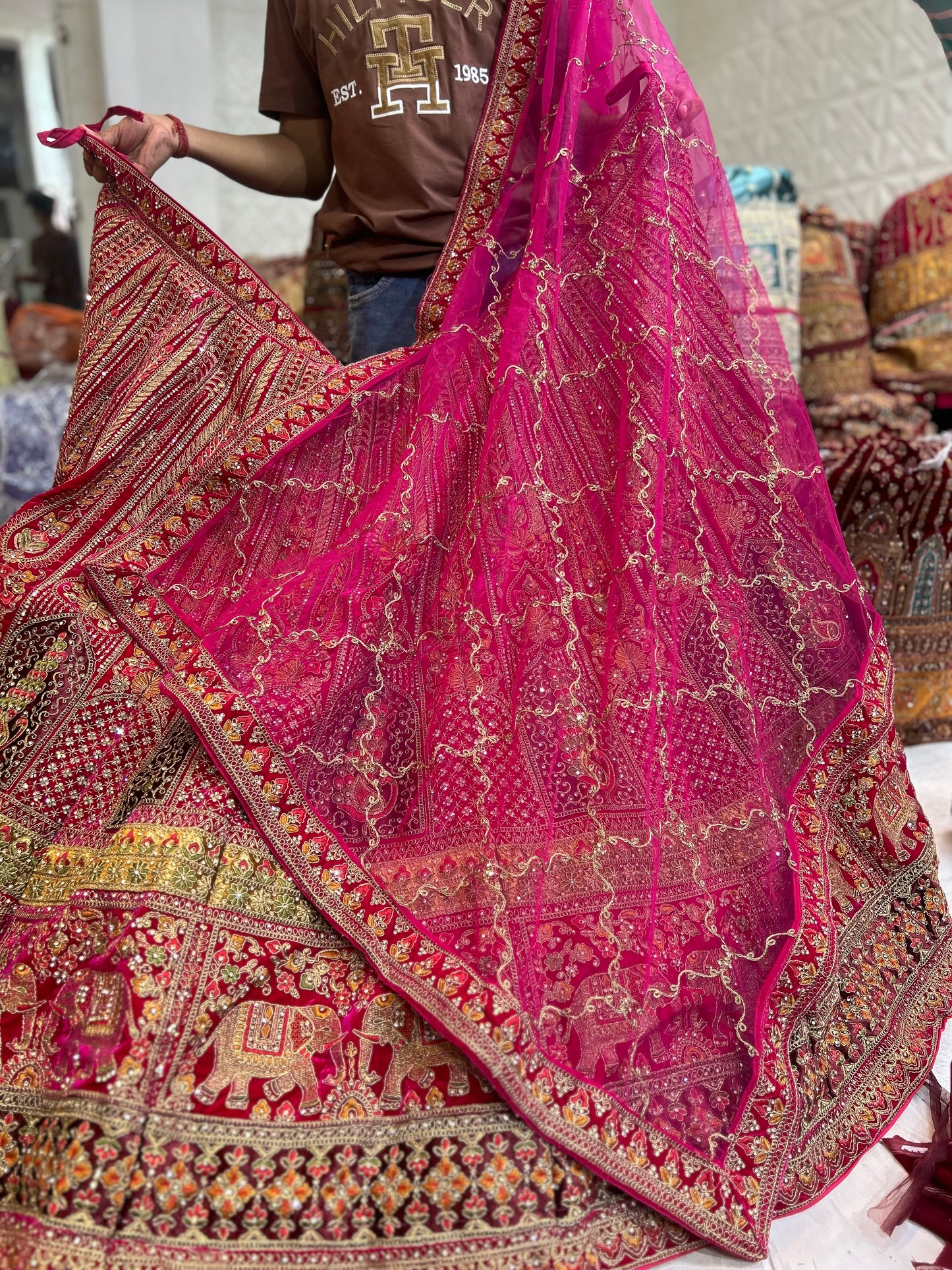 Royal Red Bridal Lehenga Double tail Dupatta with Dupatta happy customer