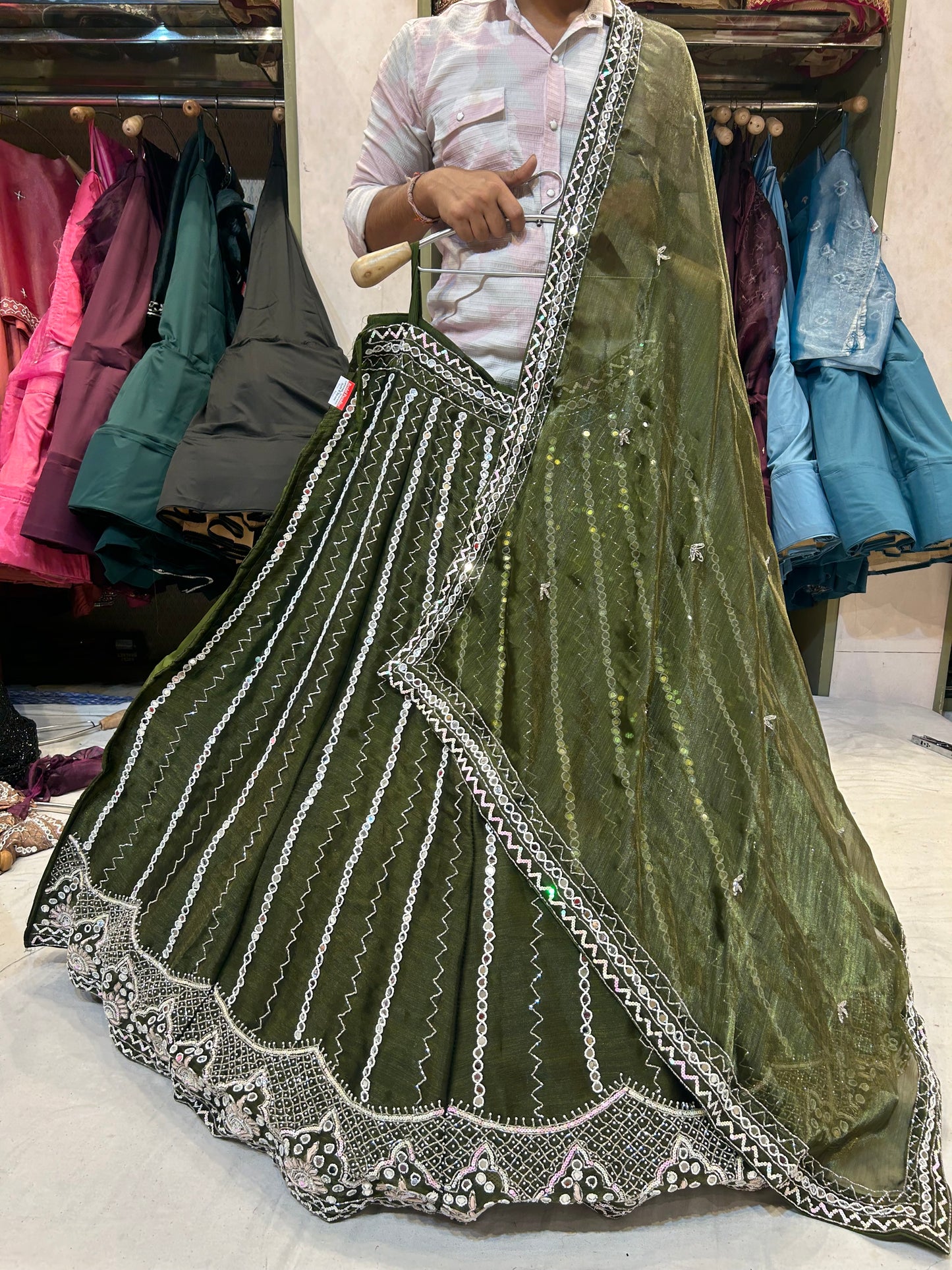 - ₹25,000 – ₹50,000: Premium partywear lehengas with intricate craftsmanship