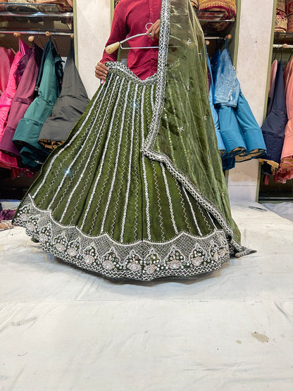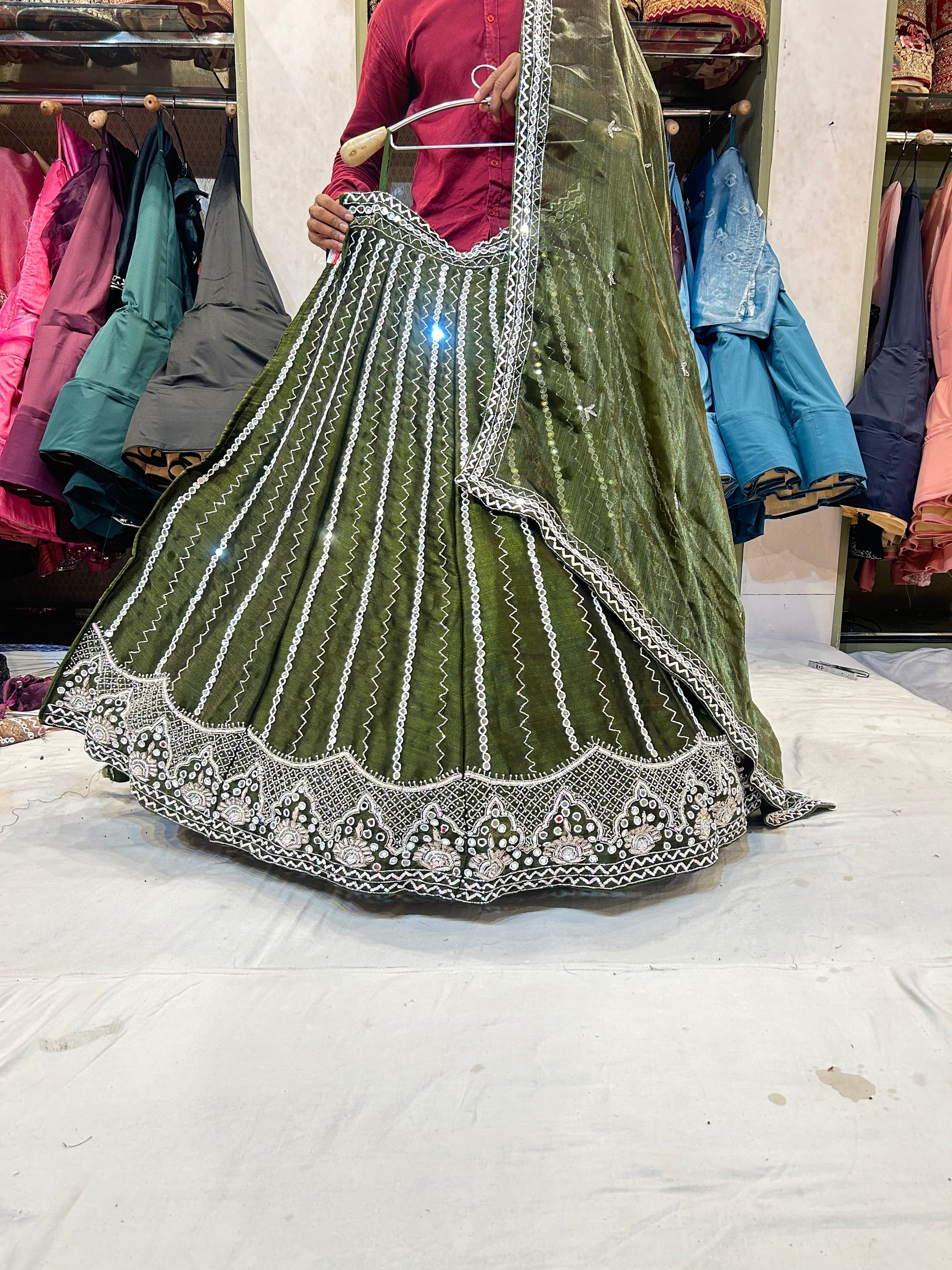 Discover elegance with our Designer Lehenga Collection, perfect for any occasion. These free-size lehengas are thoughtfully designed to accommodate all body types and can be customized to suit your unique style. Crafted to elevate your wardrobe, each lehenga set includes a semi-stitched skirt, unstitched blouse fabric (choli), and a matching chunni (dupatta), making it an ideal choice for weddings, festivals, and special celebrations.