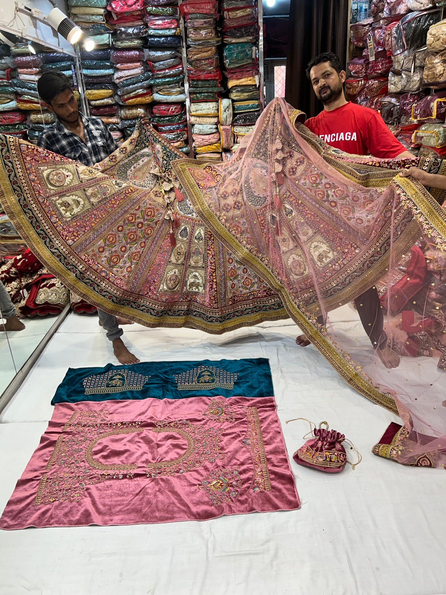 Glamorous Rani pink peacock Double dupatta Silk Bridal Lehenga happy customer