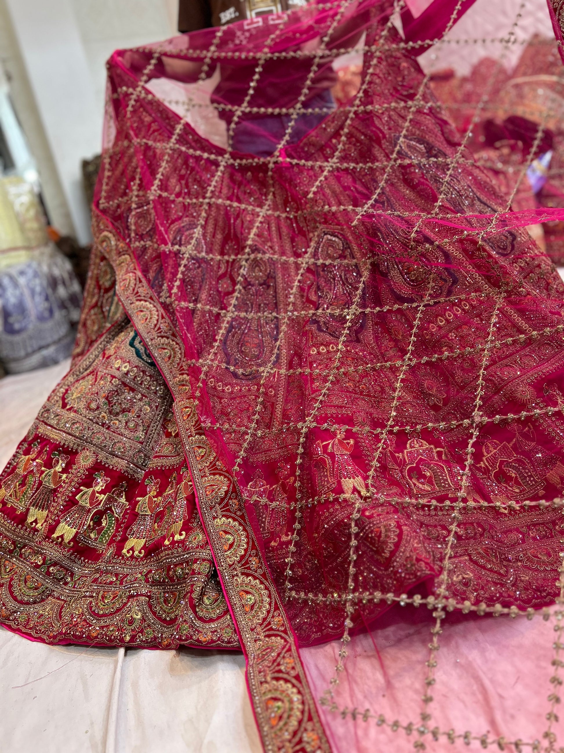 Royal Red Bridal Lehenga Double tail Dupatta with Dupatta happy customer