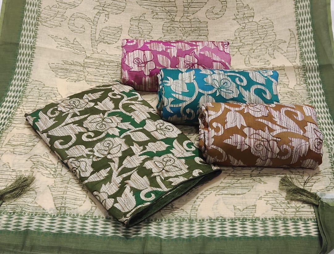 Majestic pink green Unstitched suit ( free size )