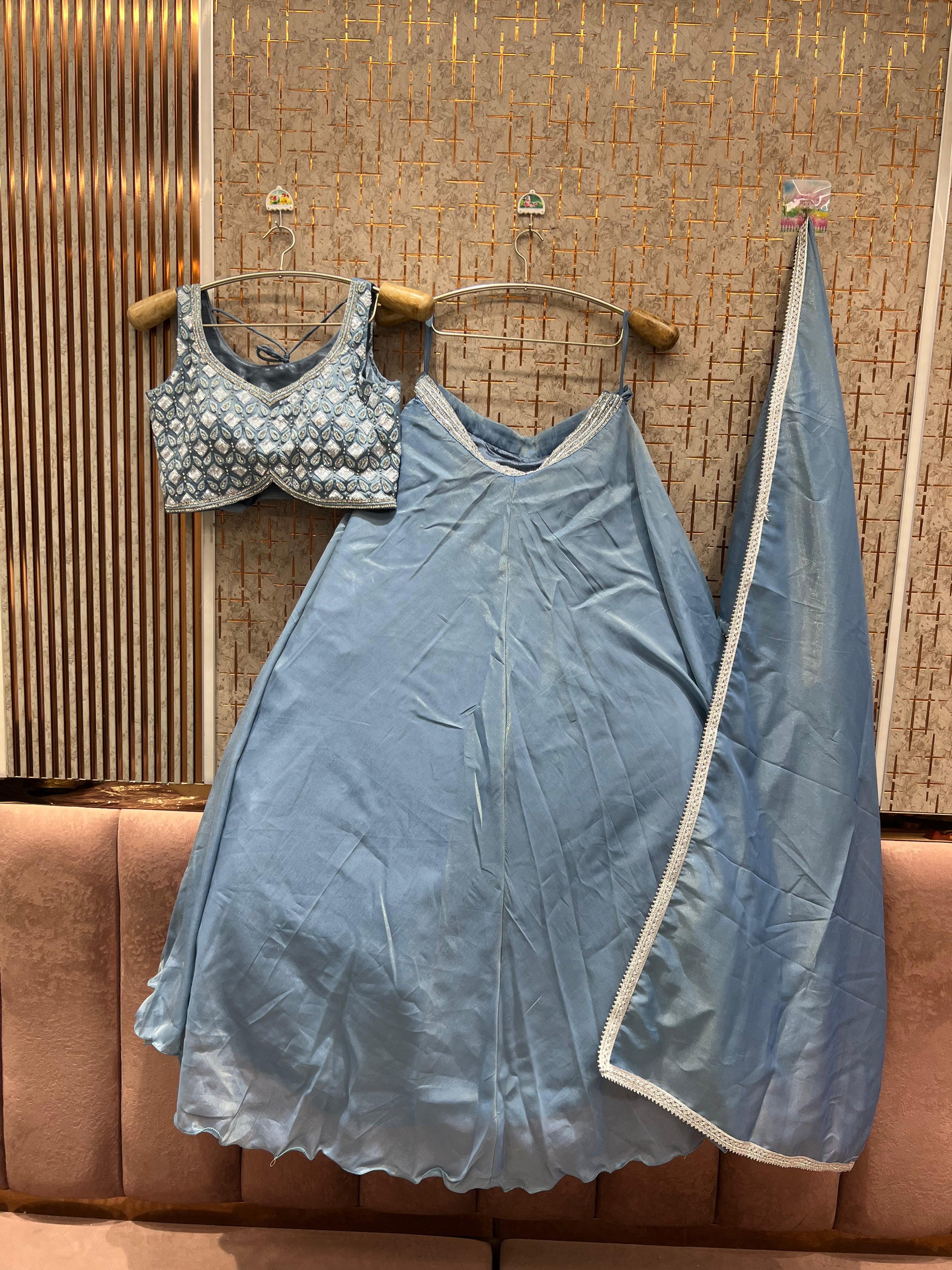 Majestic Sky blue purple pink Ready to wear Crop Top Lehenga