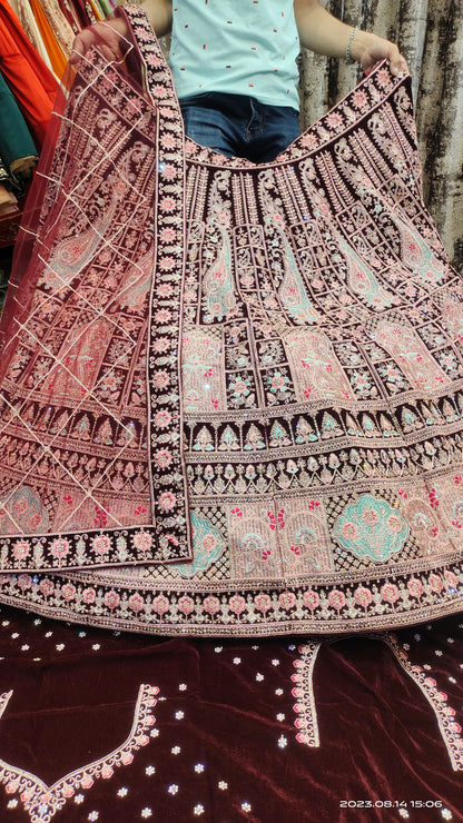 Designer jhumka Maroon bridal lehenga ( happy customer)