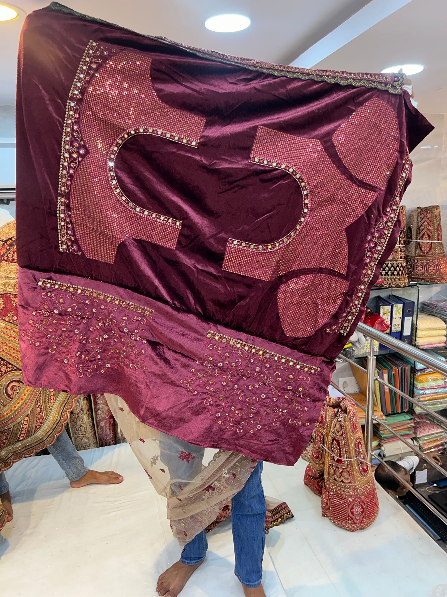 Designer jhumka Maroon bridal lehenga ( happy customer)