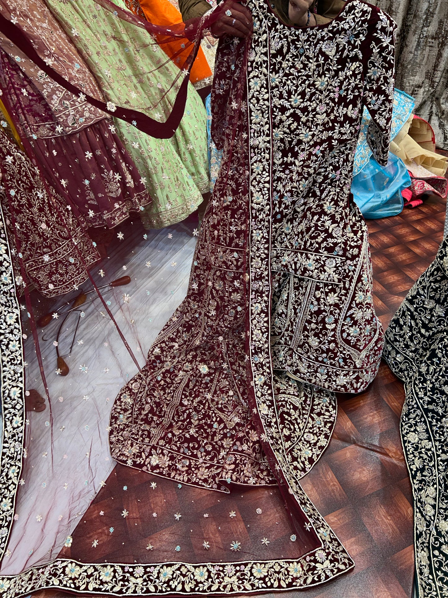 Designer jhumka Maroon bridal lehenga ( happy customer)