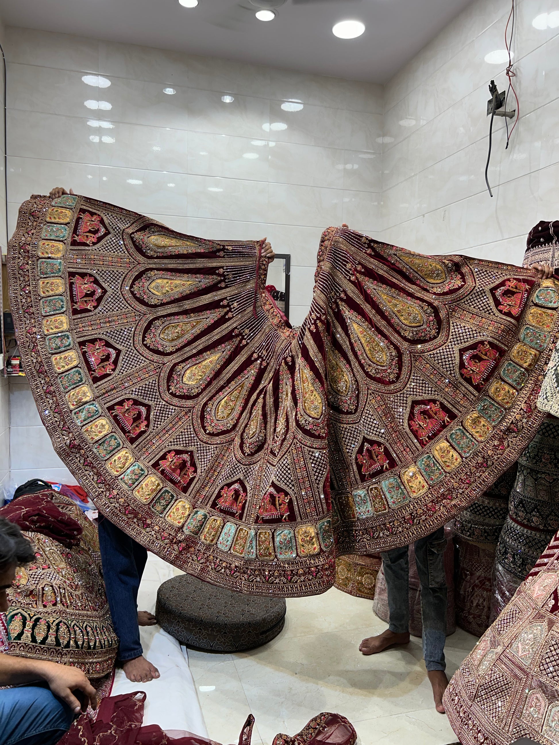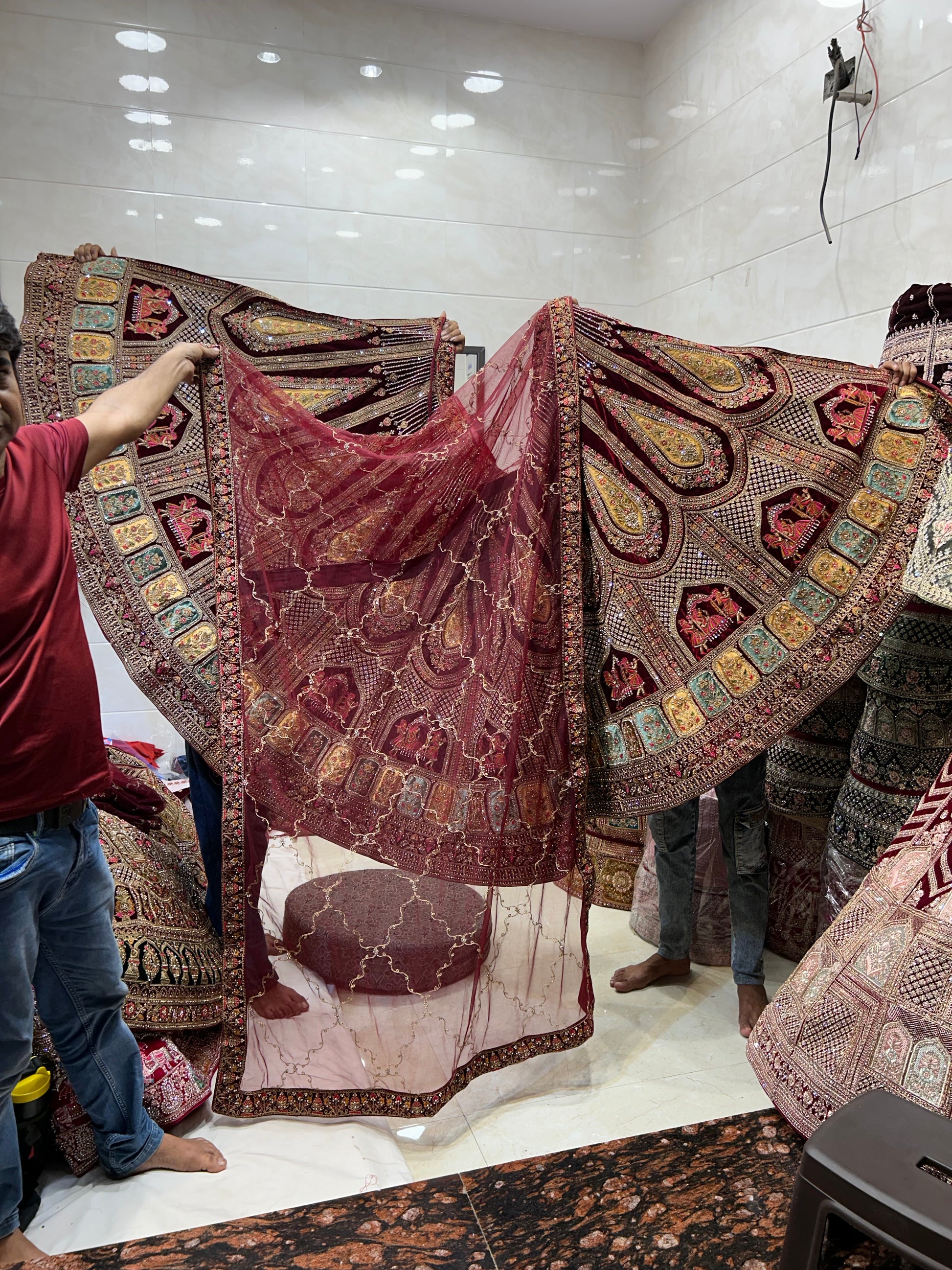 Designer jhumka Maroon bridal lehenga ( happy customer)