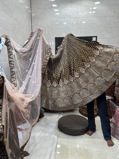 Glamorous Rani pink peacock Double dupatta Silk Bridal Lehenga happy customer