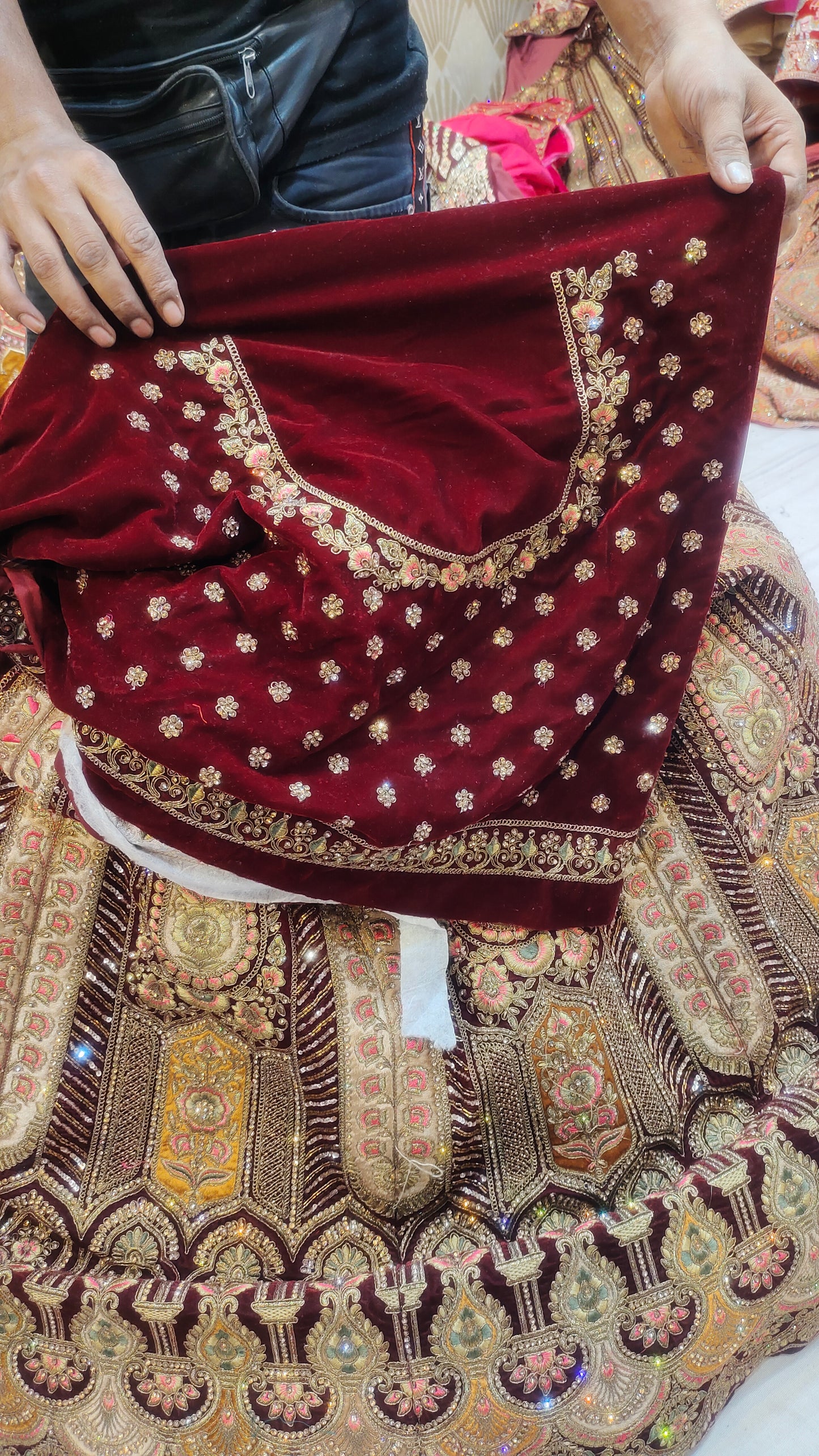 Designer jhumka Maroon bridal lehenga ( happy customer)