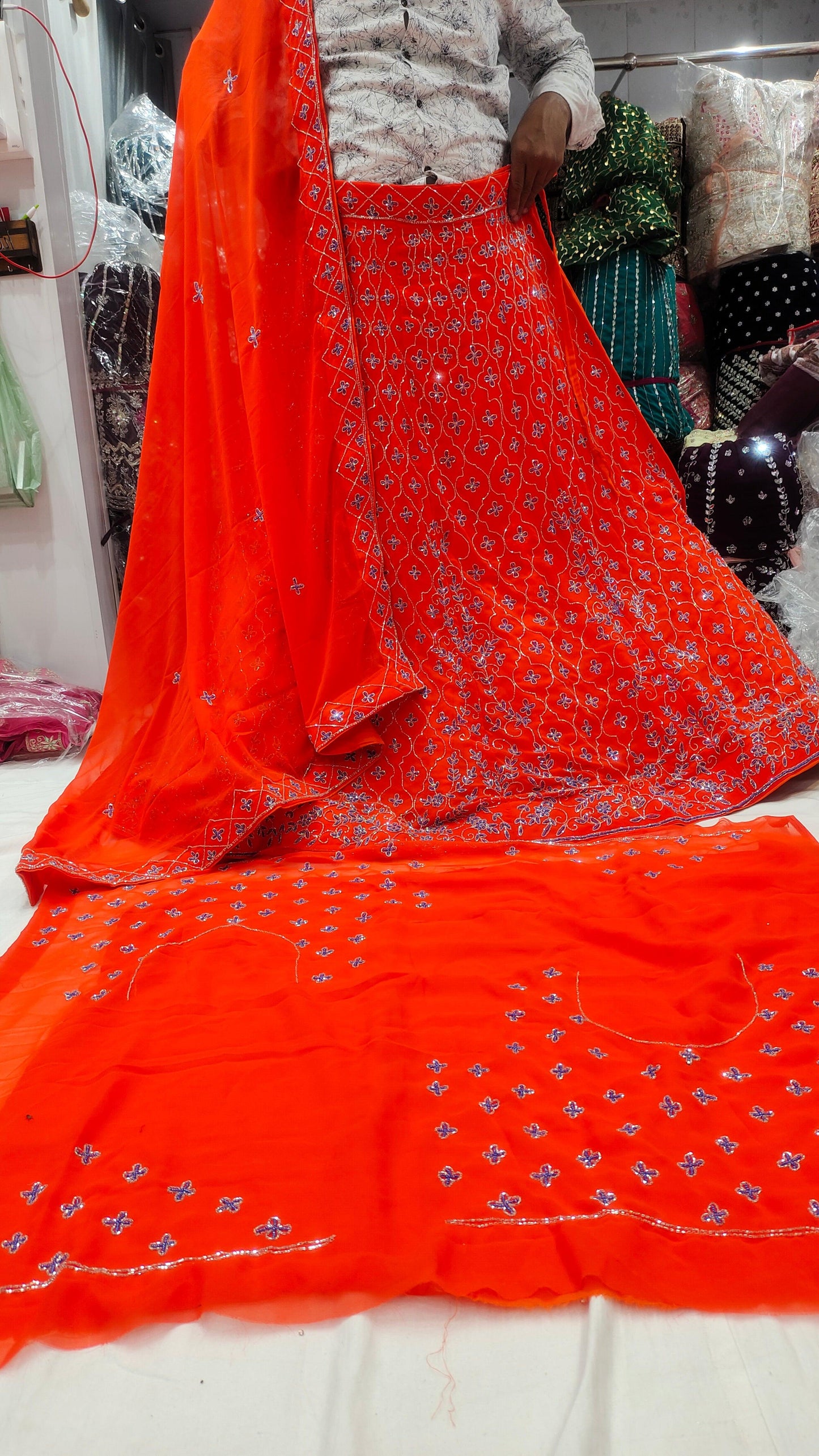 Discover elegance with our Designer Lehenga Collection, perfect for any occasion. These free-size lehengas are thoughtfully designed to accommodate all body types and can be customized to suit your unique style. Crafted to elevate your wardrobe, each lehenga set includes a semi-stitched skirt, unstitched blouse fabric (choli), and a matching chunni (dupatta), making it an ideal choice for weddings, festivals, and special celebrations.