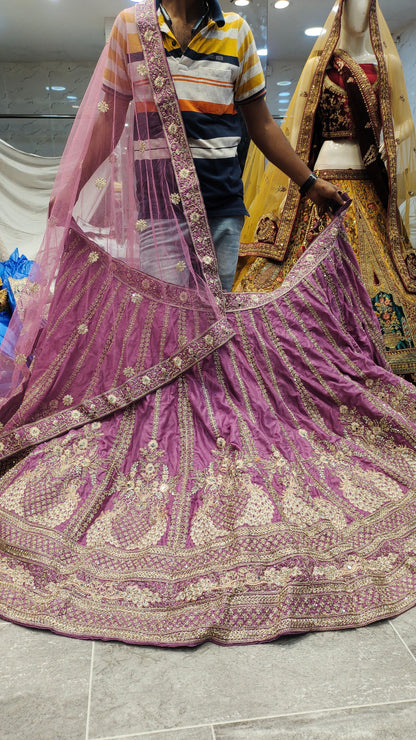 Glamorous Rani pink peacock Double dupatta Silk Bridal Lehenga happy customer