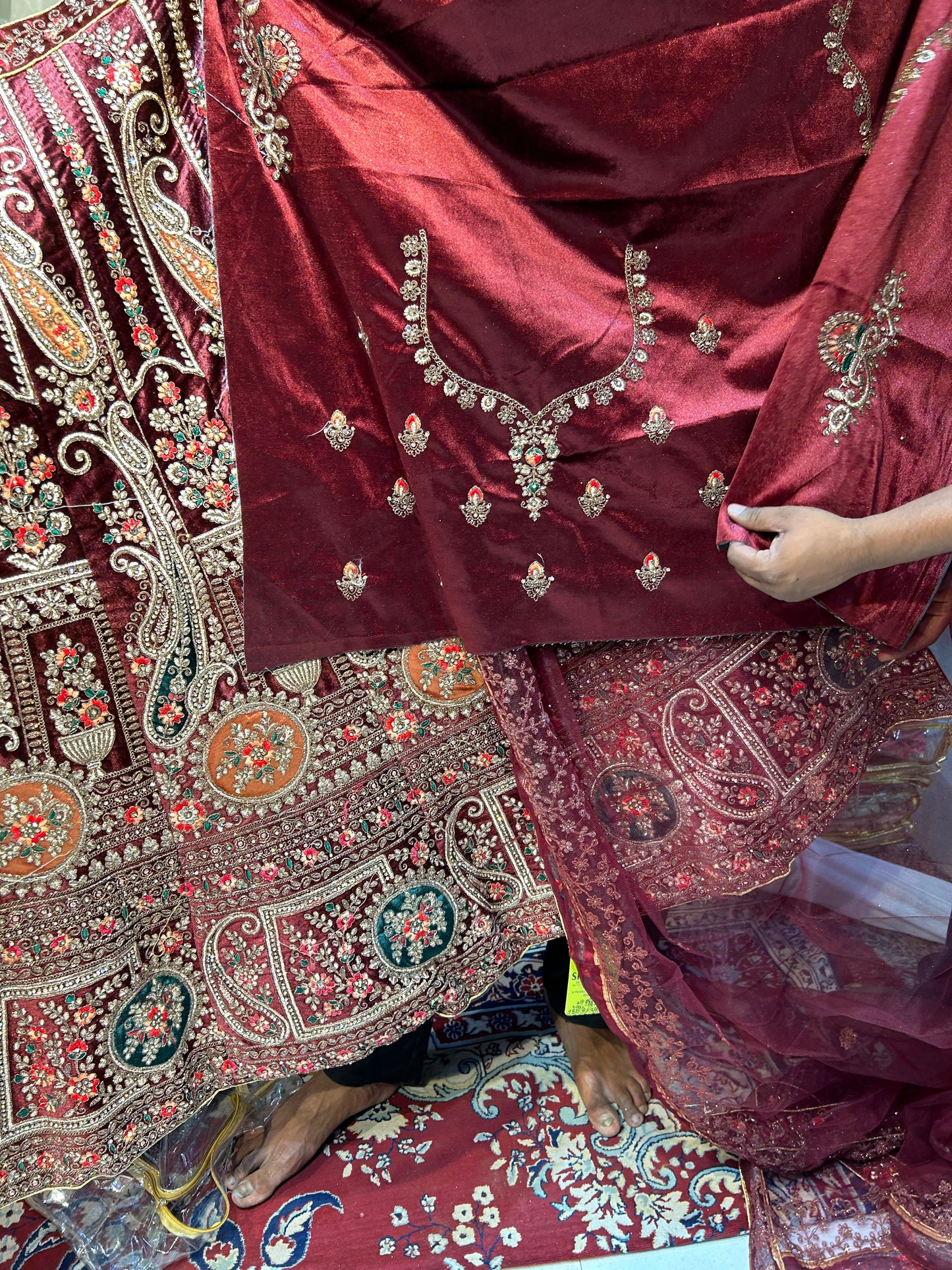 Designer jhumka Maroon bridal lehenga ( happy customer)