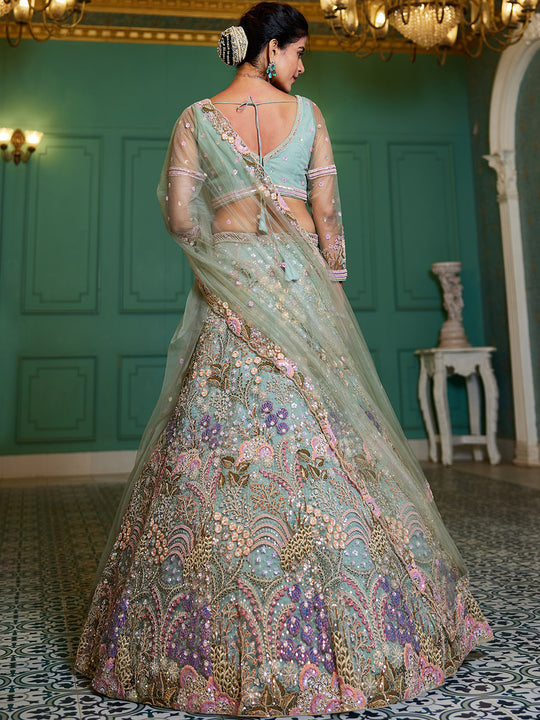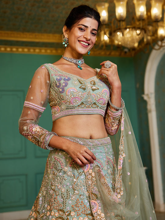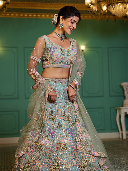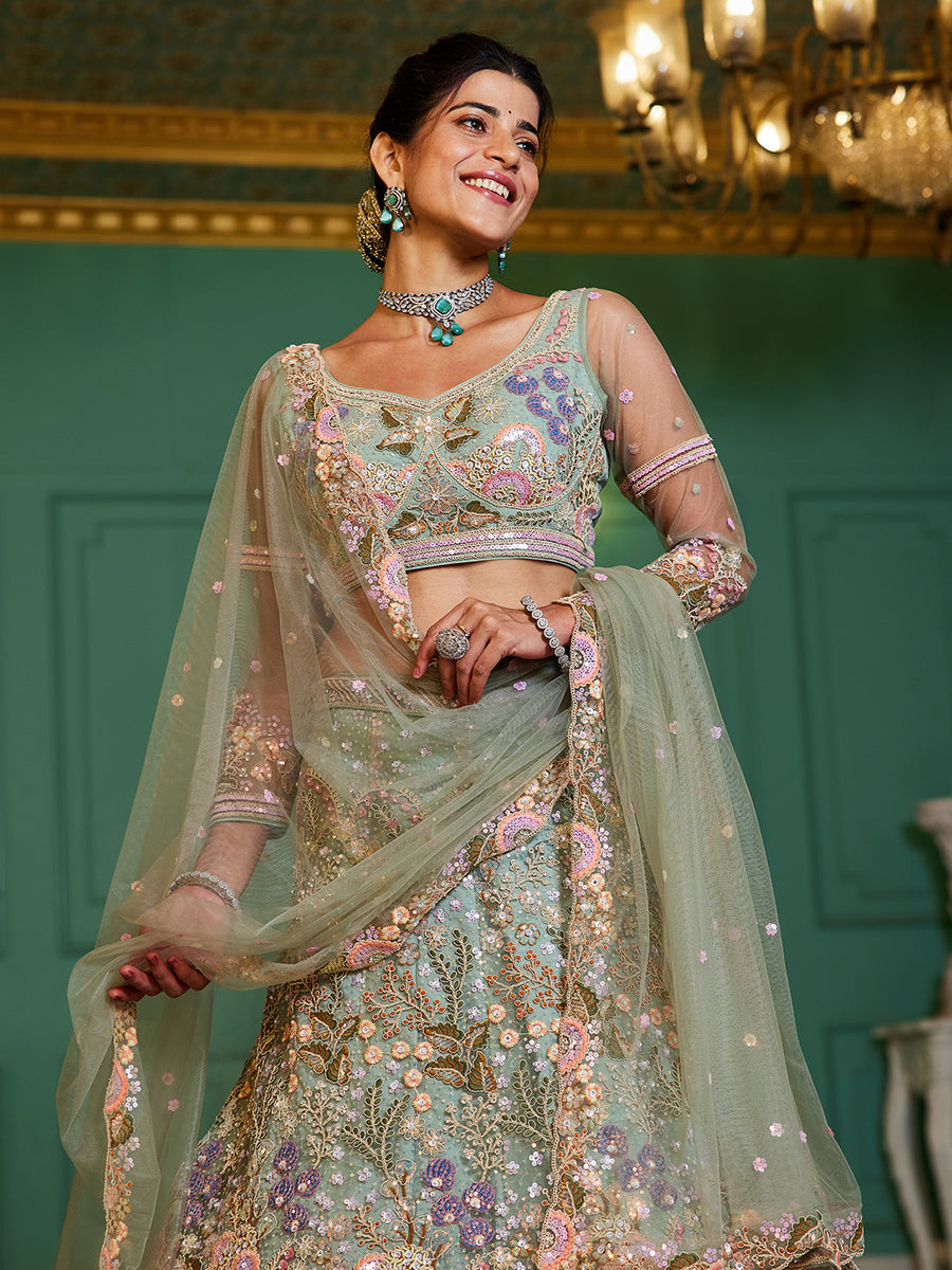 Attractive pista green peacock crop top Lehenga Happy Customer