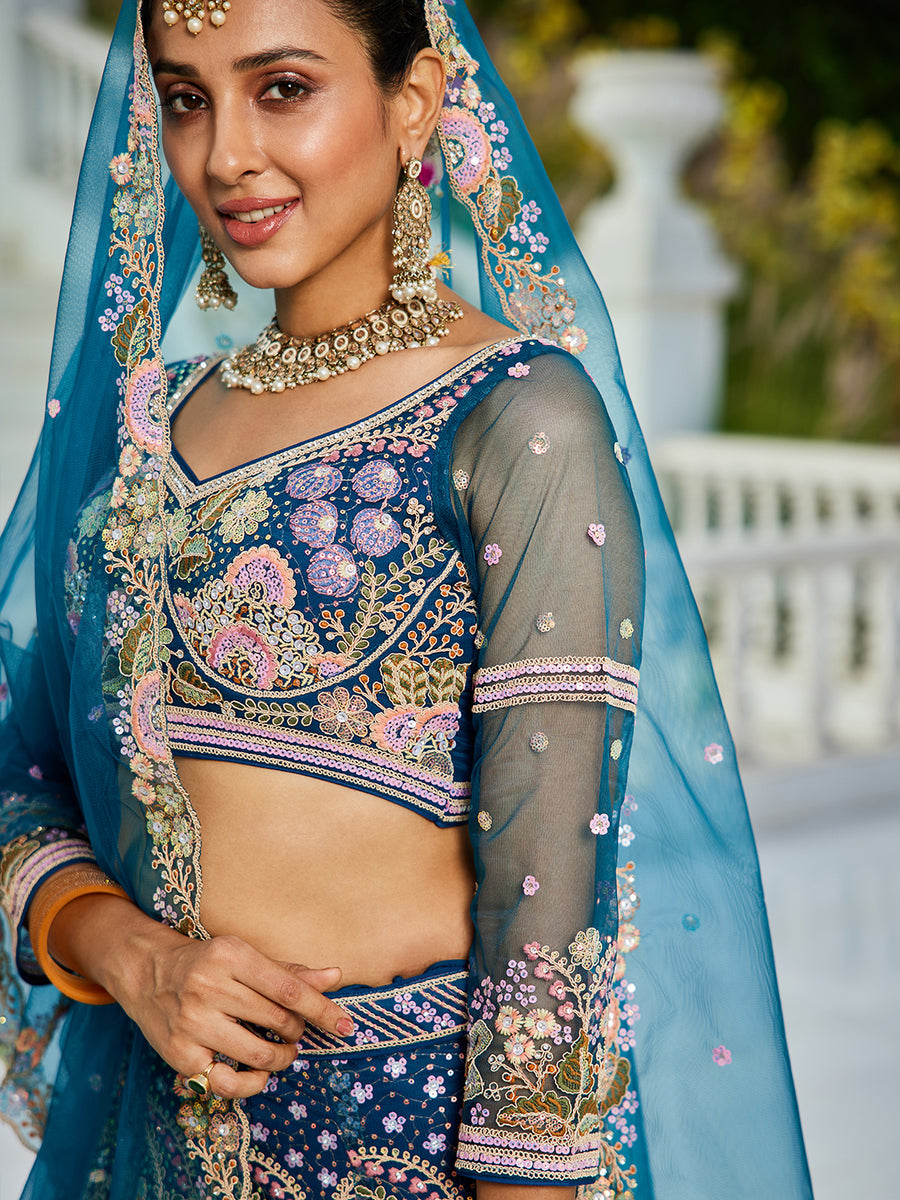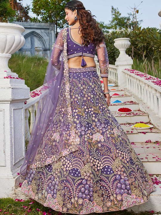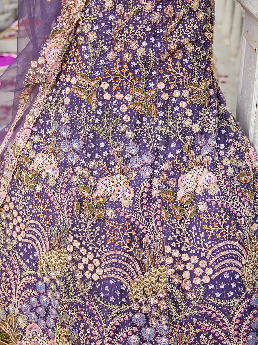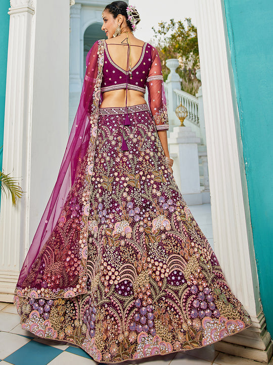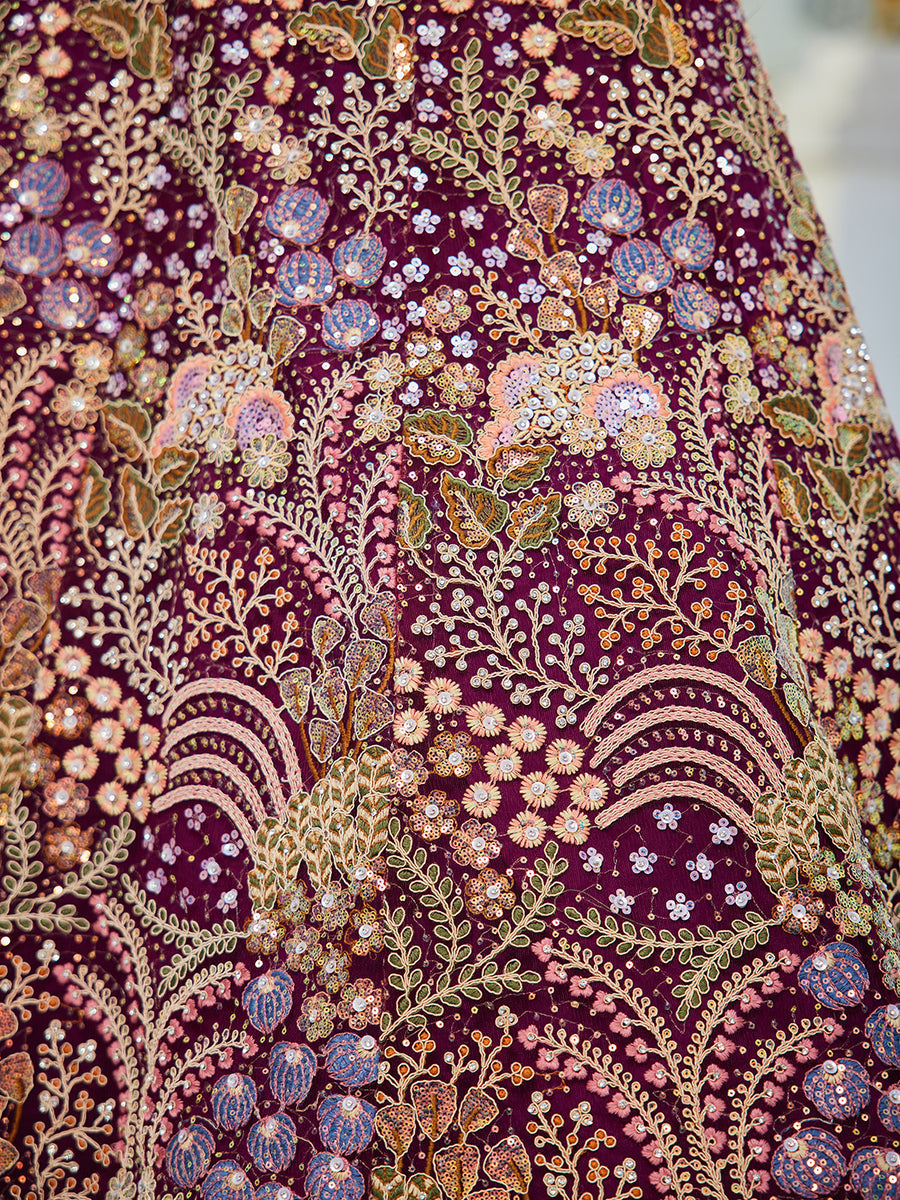 Pink Multi-Color Sequins Work Heavy Floral Lehenga Embroidered Using Zarkan & Mirror Lehenga