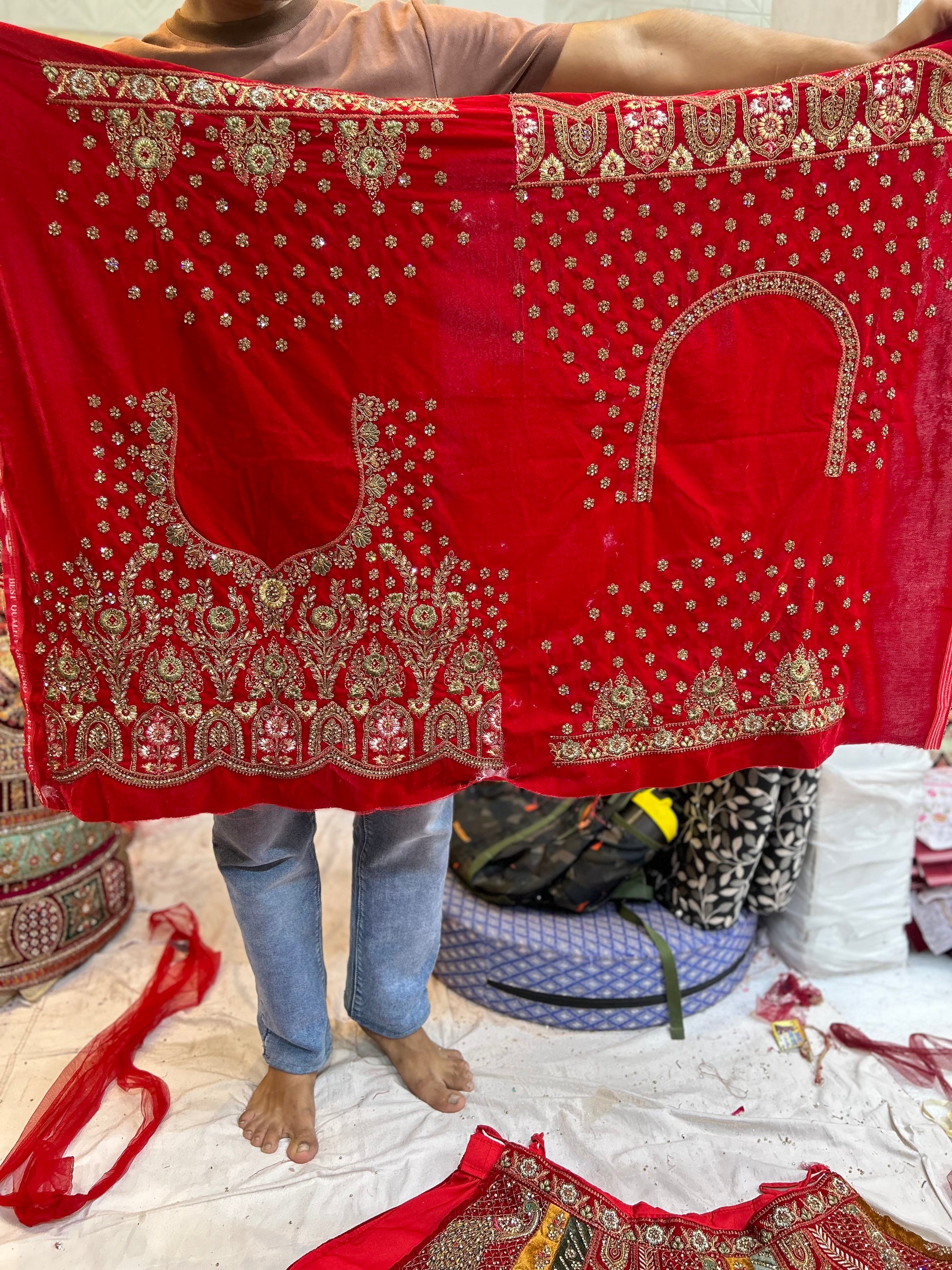 Royal Red Bridal Lehenga Double tail Dupatta with Dupatta happy customer