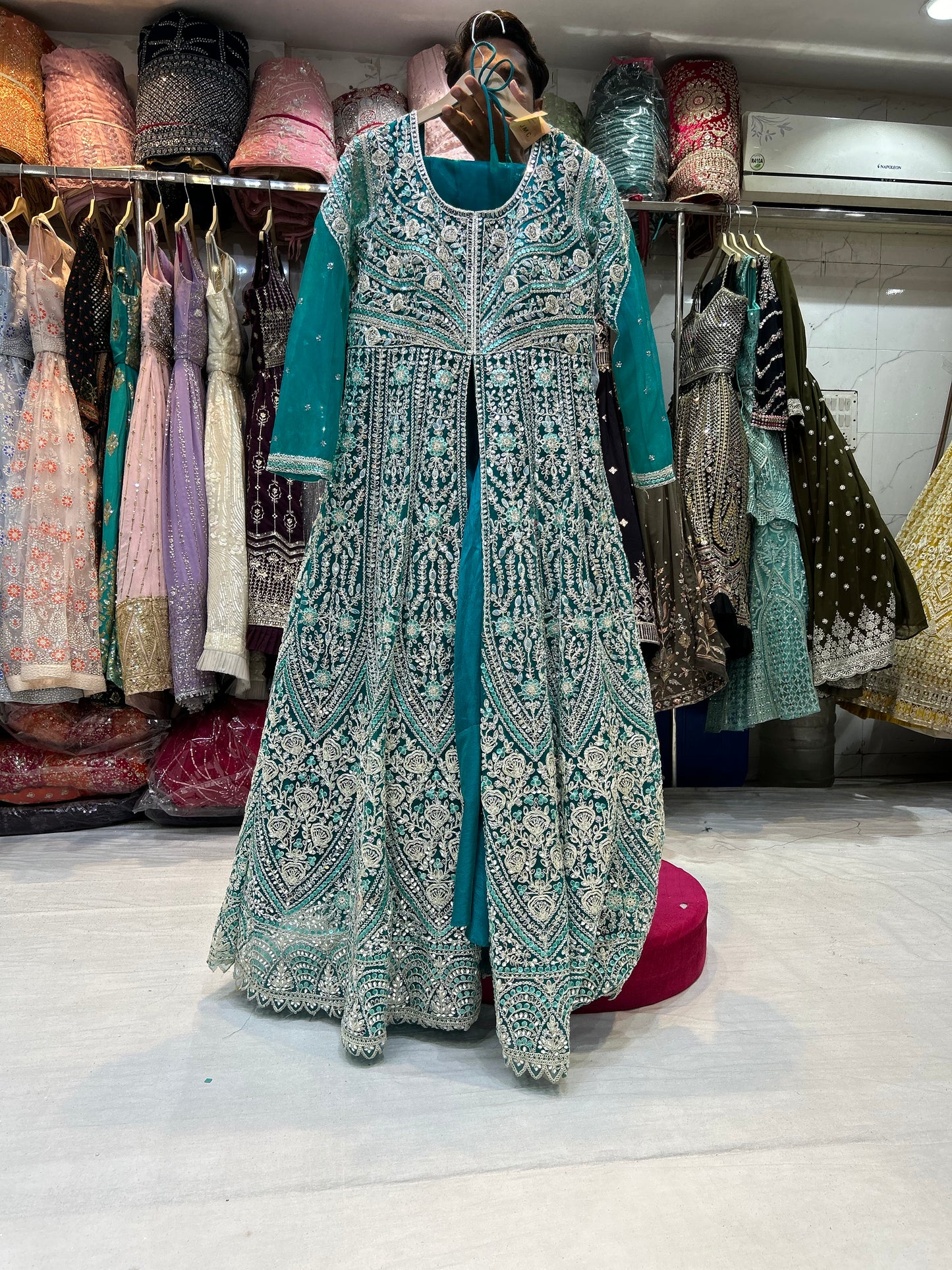 Discover elegance with our Designer Gown Collection, perfect for every special occasion. These free-size gowns are Designed to enhance your wardrobe, gown features intricate embroidery, luxurious fabrics, and a flattering silhouette, making it an ideal choice for weddings, cocktail parties, receptions, and festive celebrations.