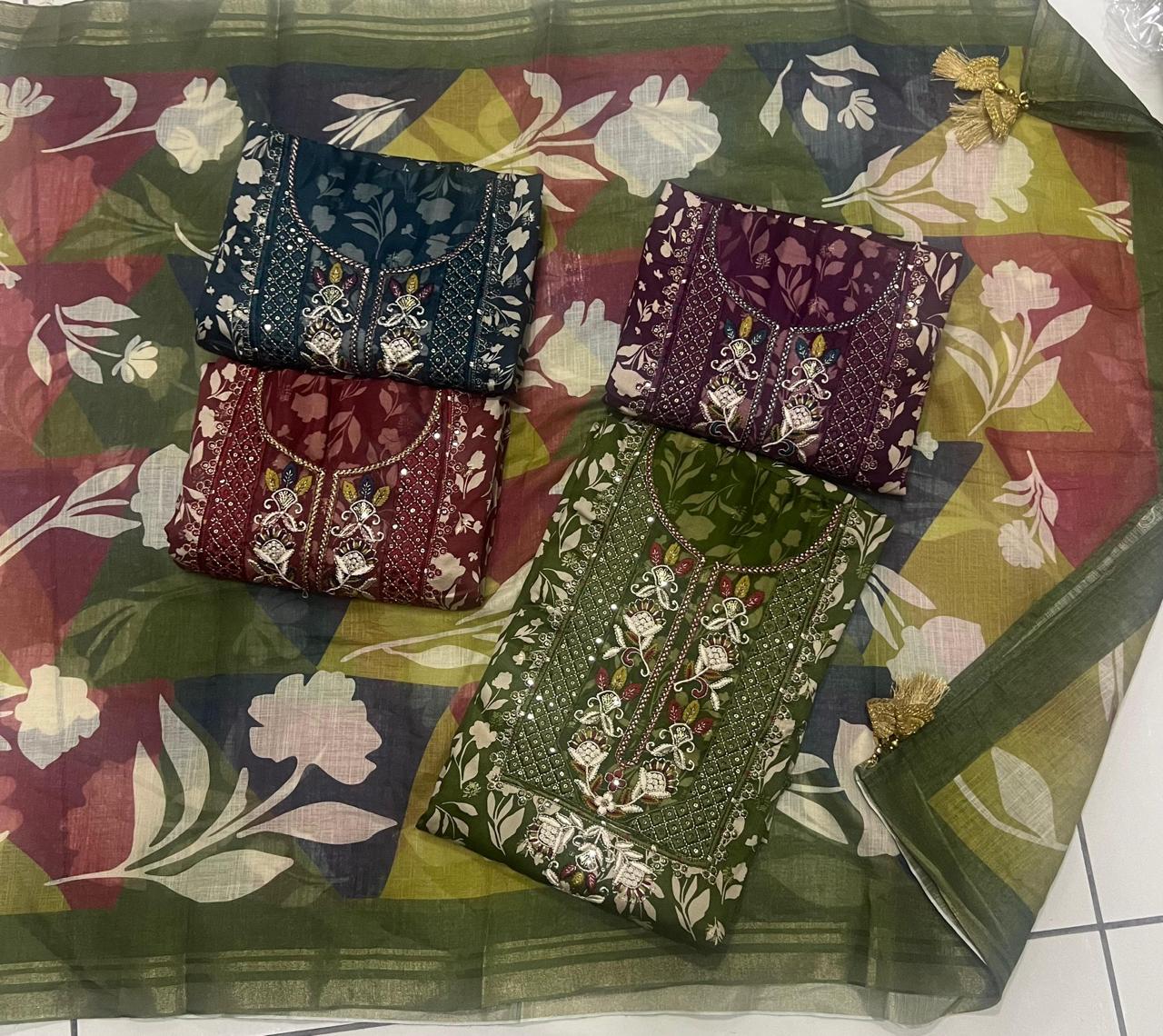 Pretty green maroon wine navy blue unstitched salwar suit dress material (free size)