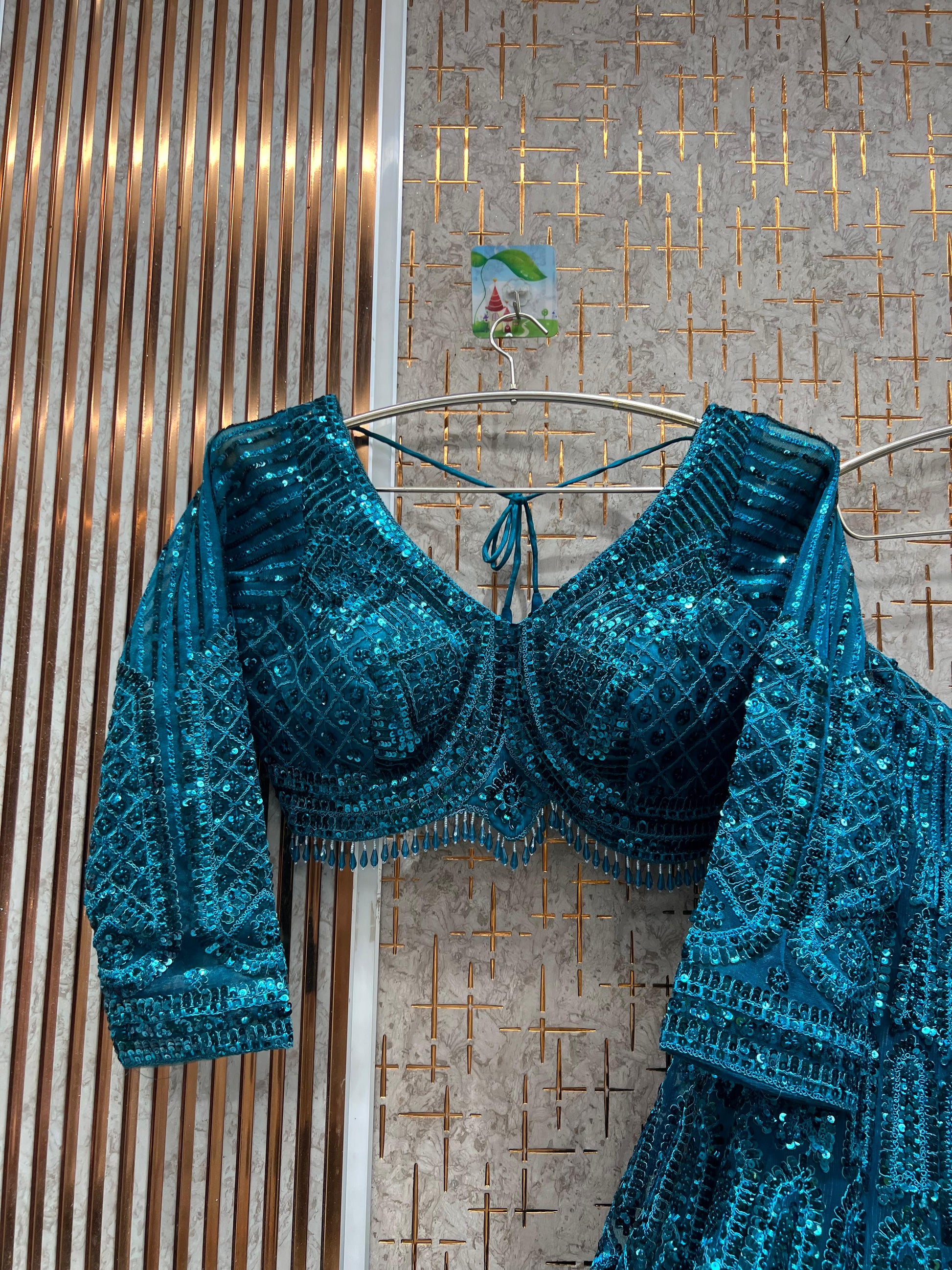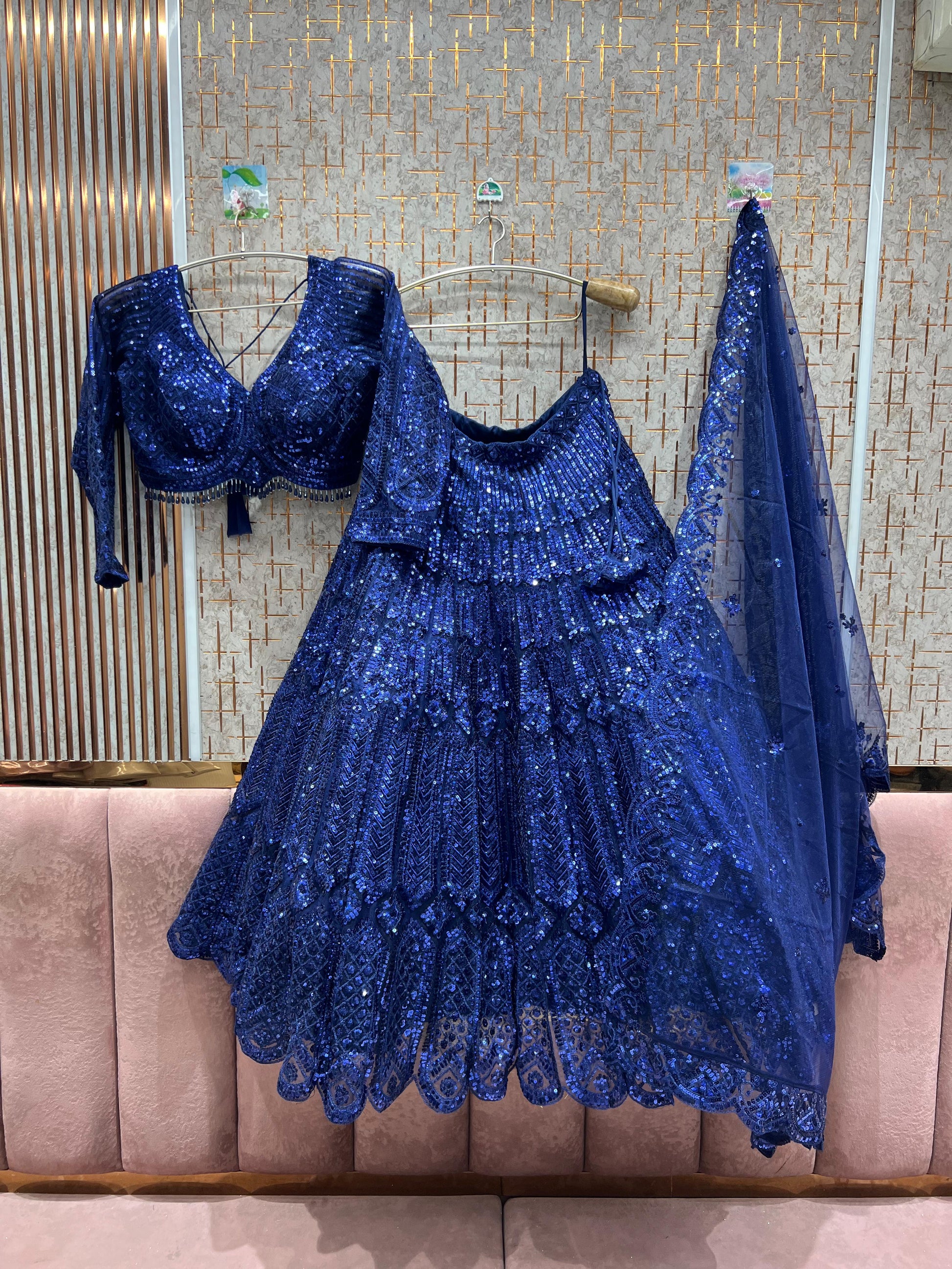 Pretty Navy Blue on Blue monotone crop top Lehenga