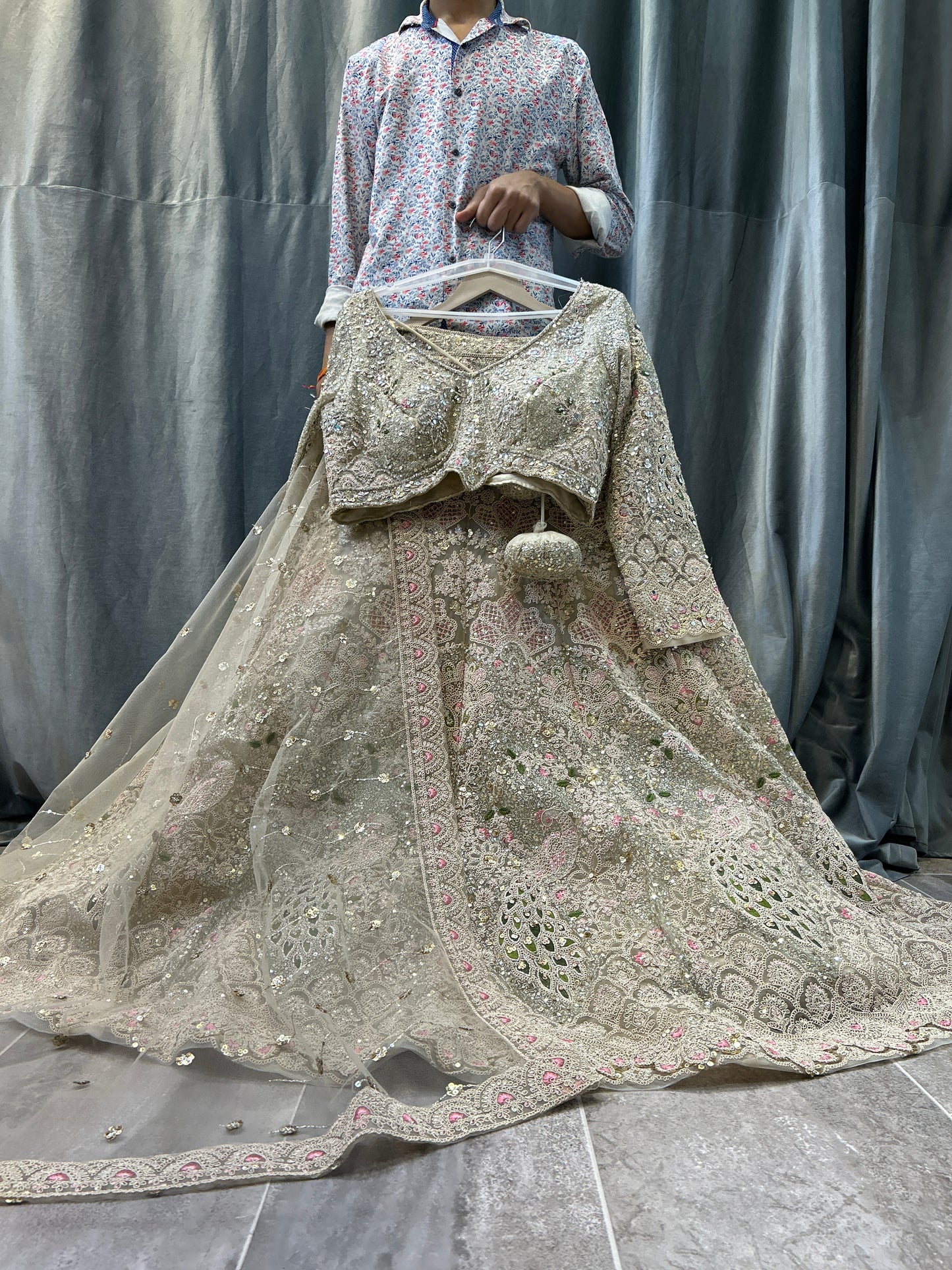 Attractive pista green peacock crop top Lehenga Happy Customer