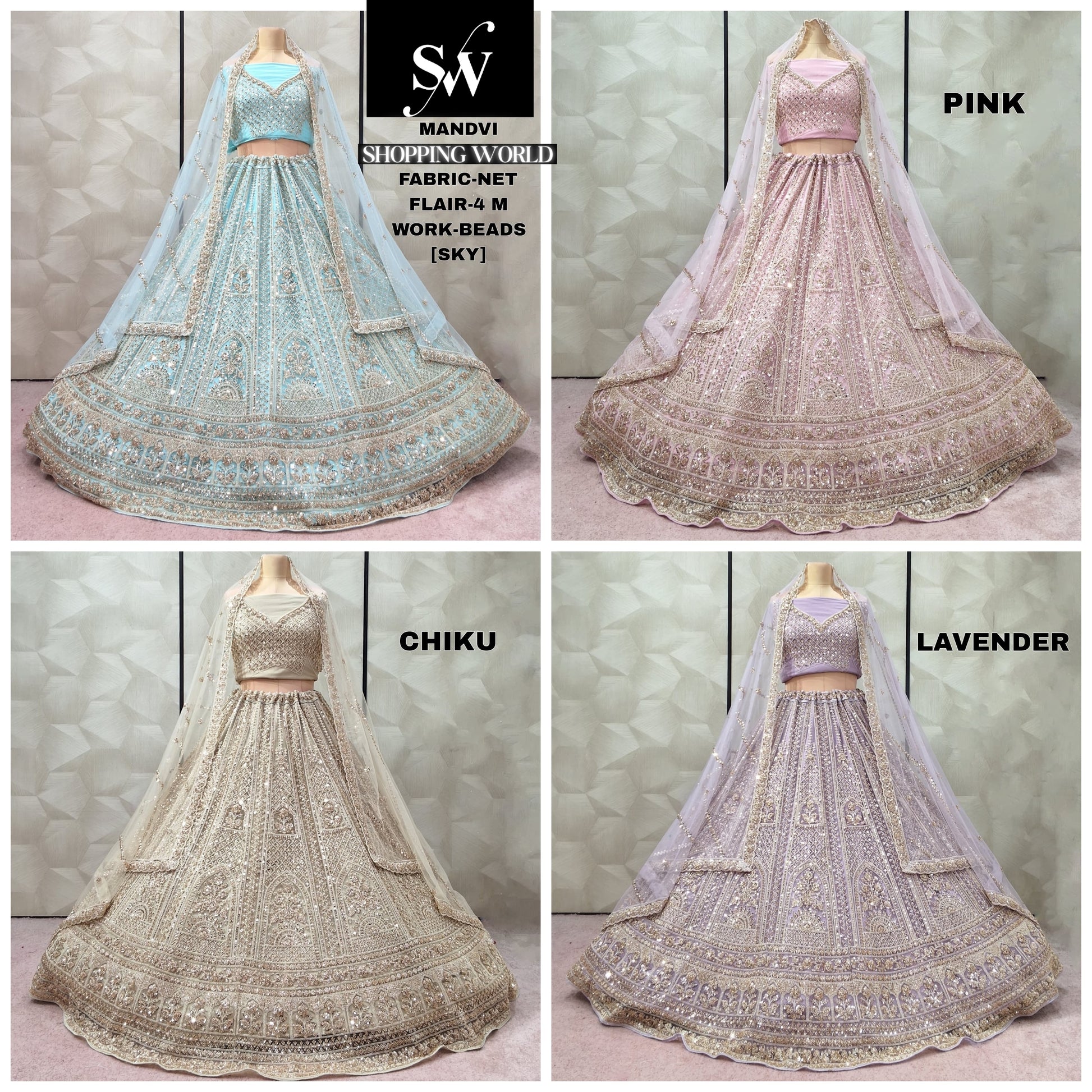 Pretty Sky blue Pink Chiku golden Lavender Lehenga