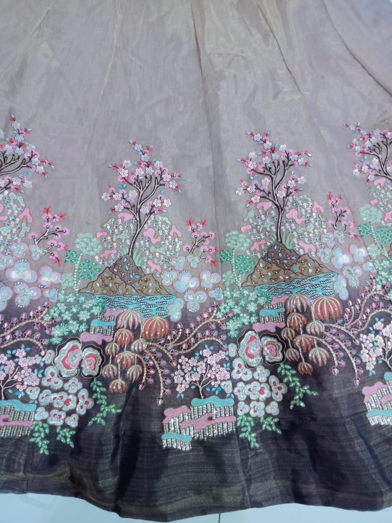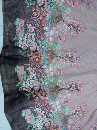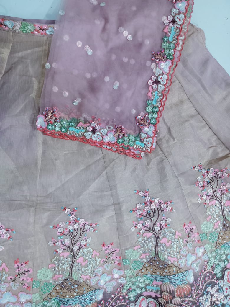 Purple Multi-Color Net Fabric Sequins Work Heavy Floral Embroidered Lehenga