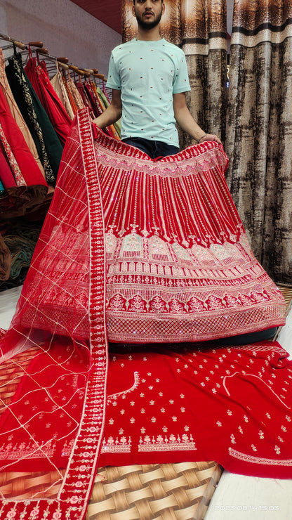 Royal Red Bridal Lehenga Double tail Dupatta with Dupatta happy customer