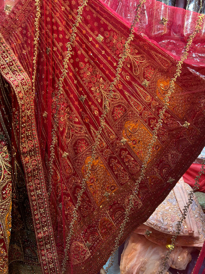 Royal Red Bridal Lehenga Double tail Dupatta with Dupatta happy customer