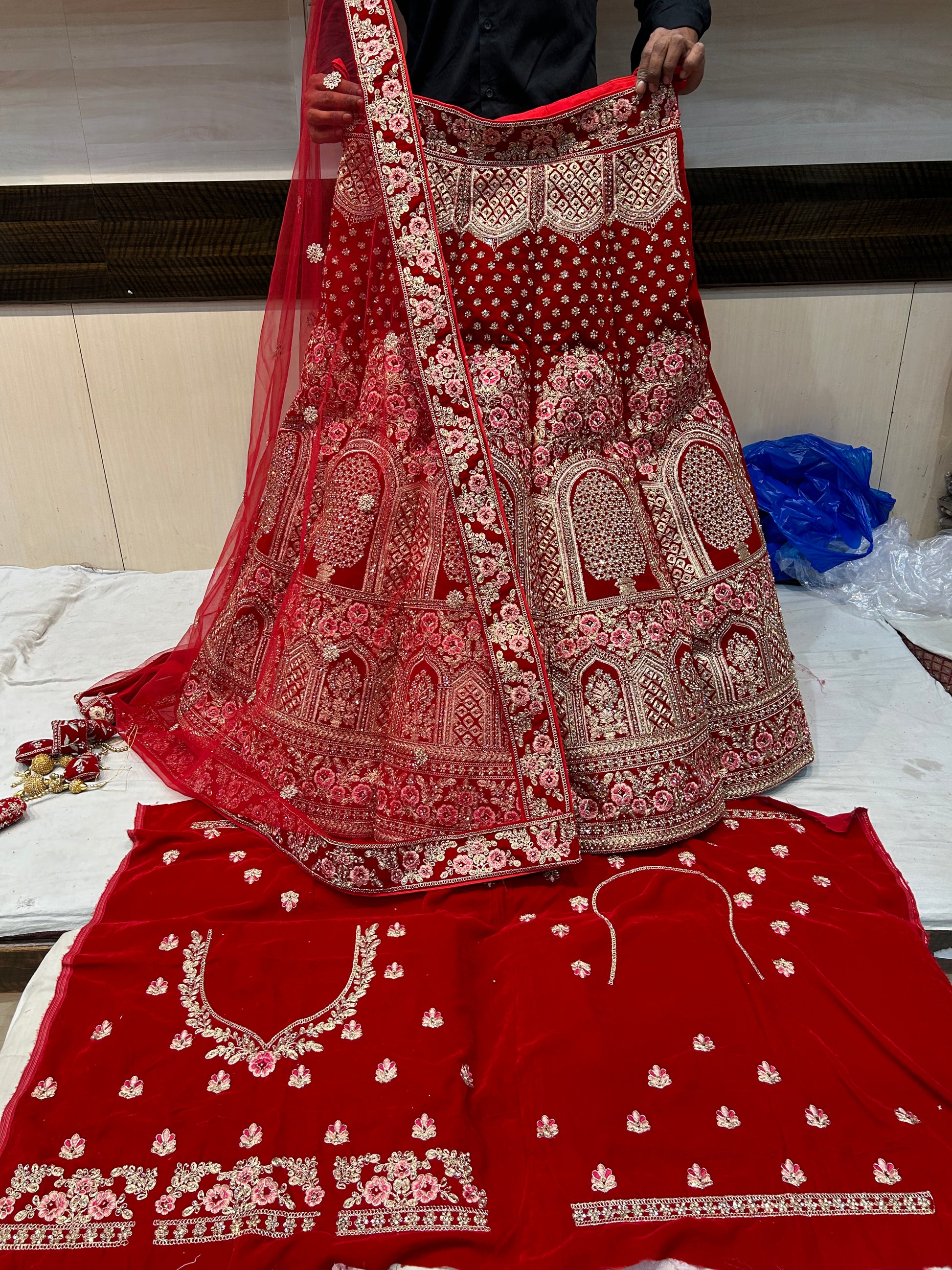 Royal Red Bridal Lehenga Double tail Dupatta with Dupatta happy customer
