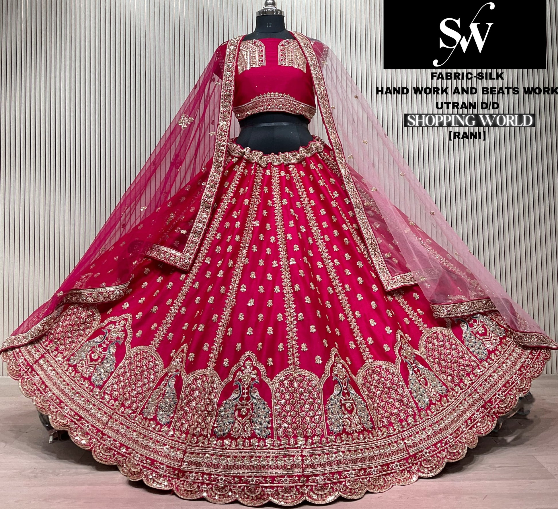 Glamorous Rani pink peacock Double dupatta Silk Bridal Lehenga happy customer