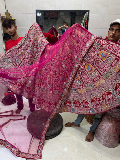 Glamorous Rani pink peacock Double dupatta Silk Bridal Lehenga happy customer