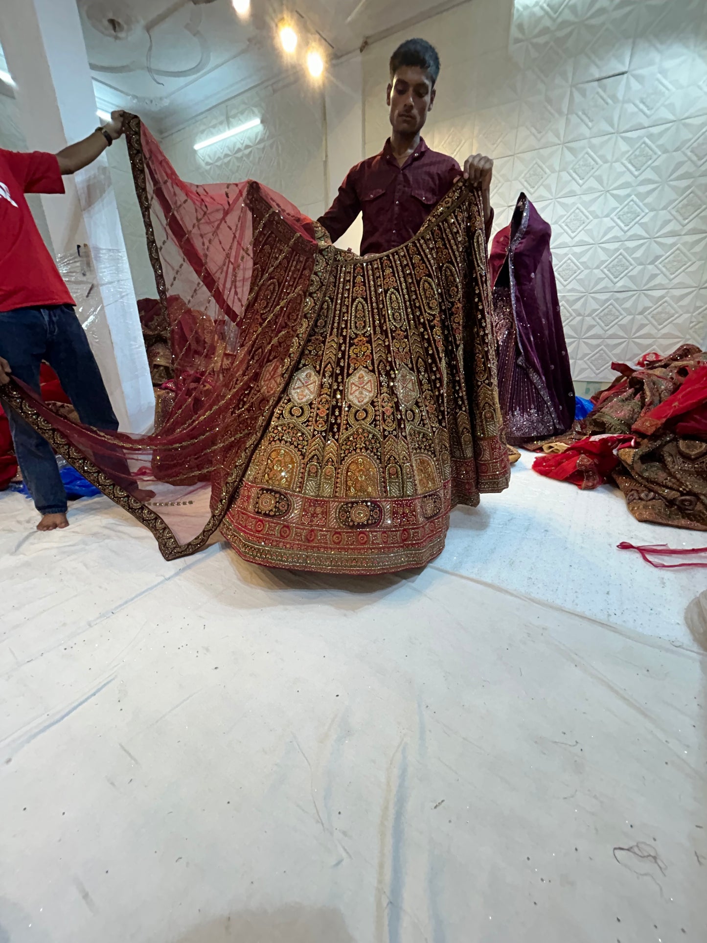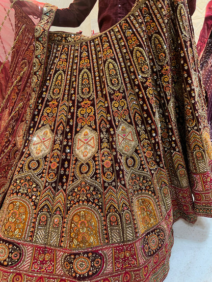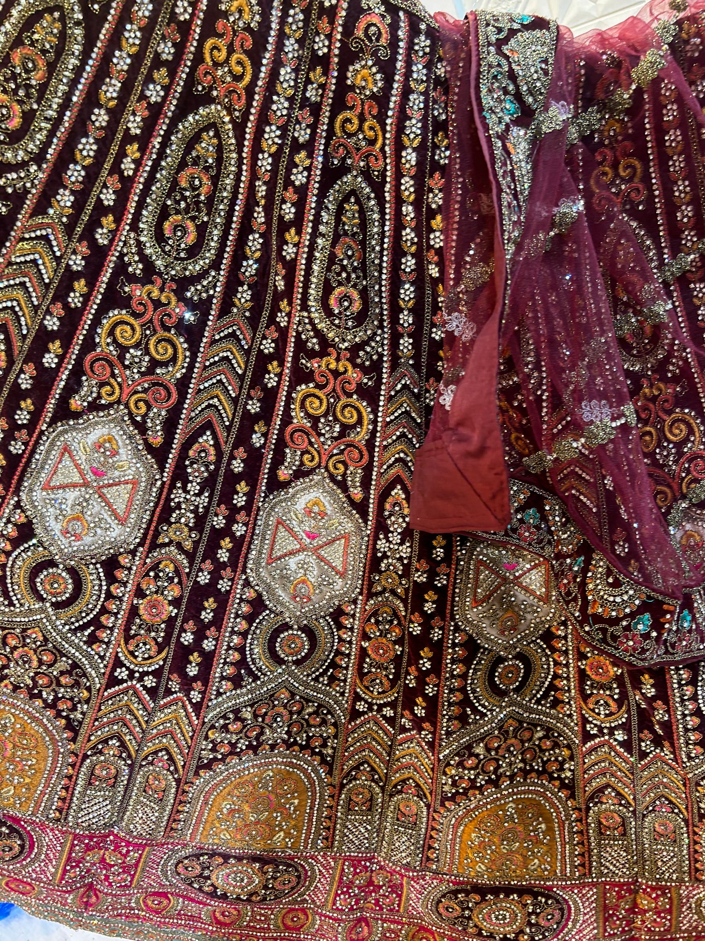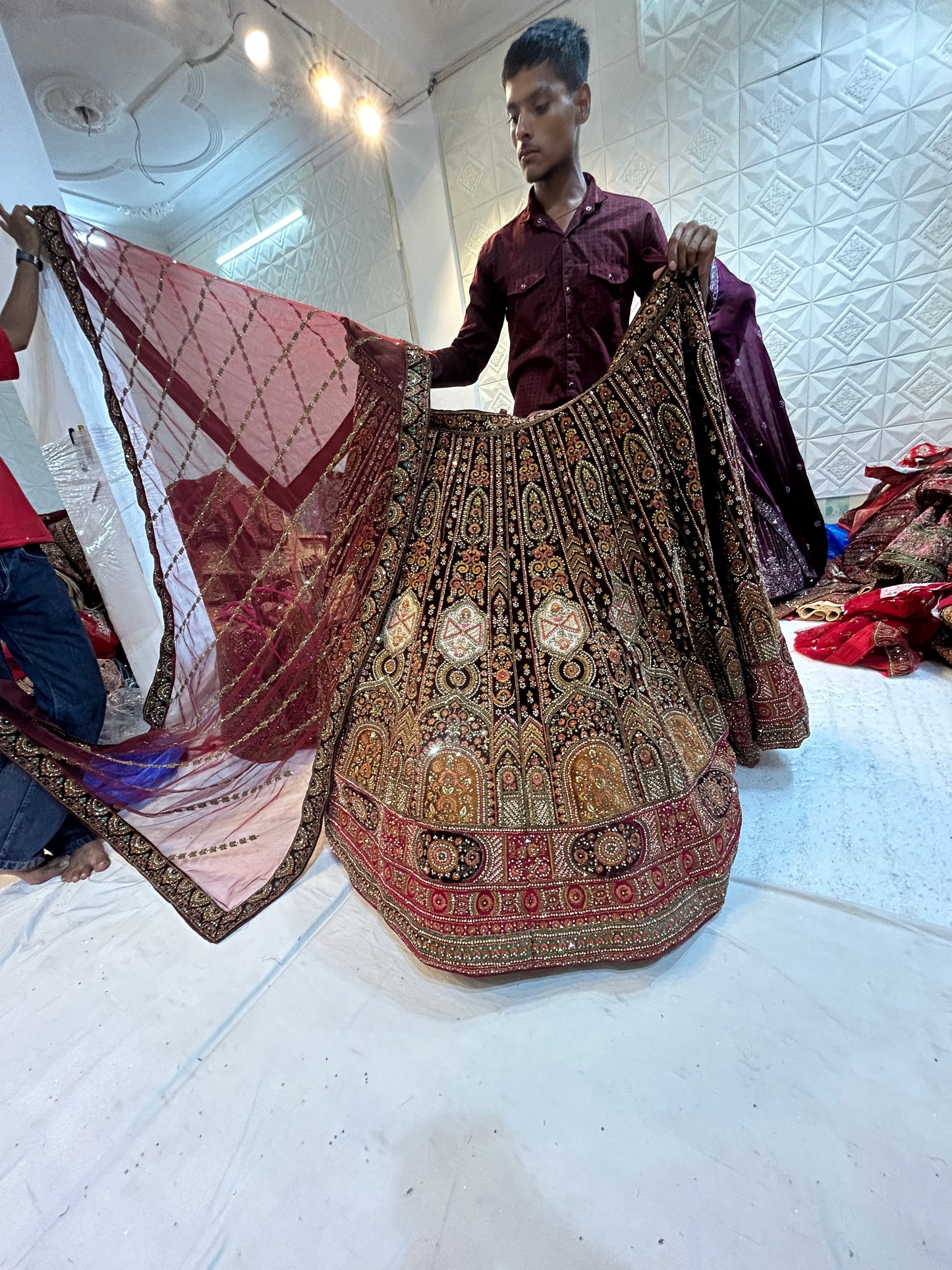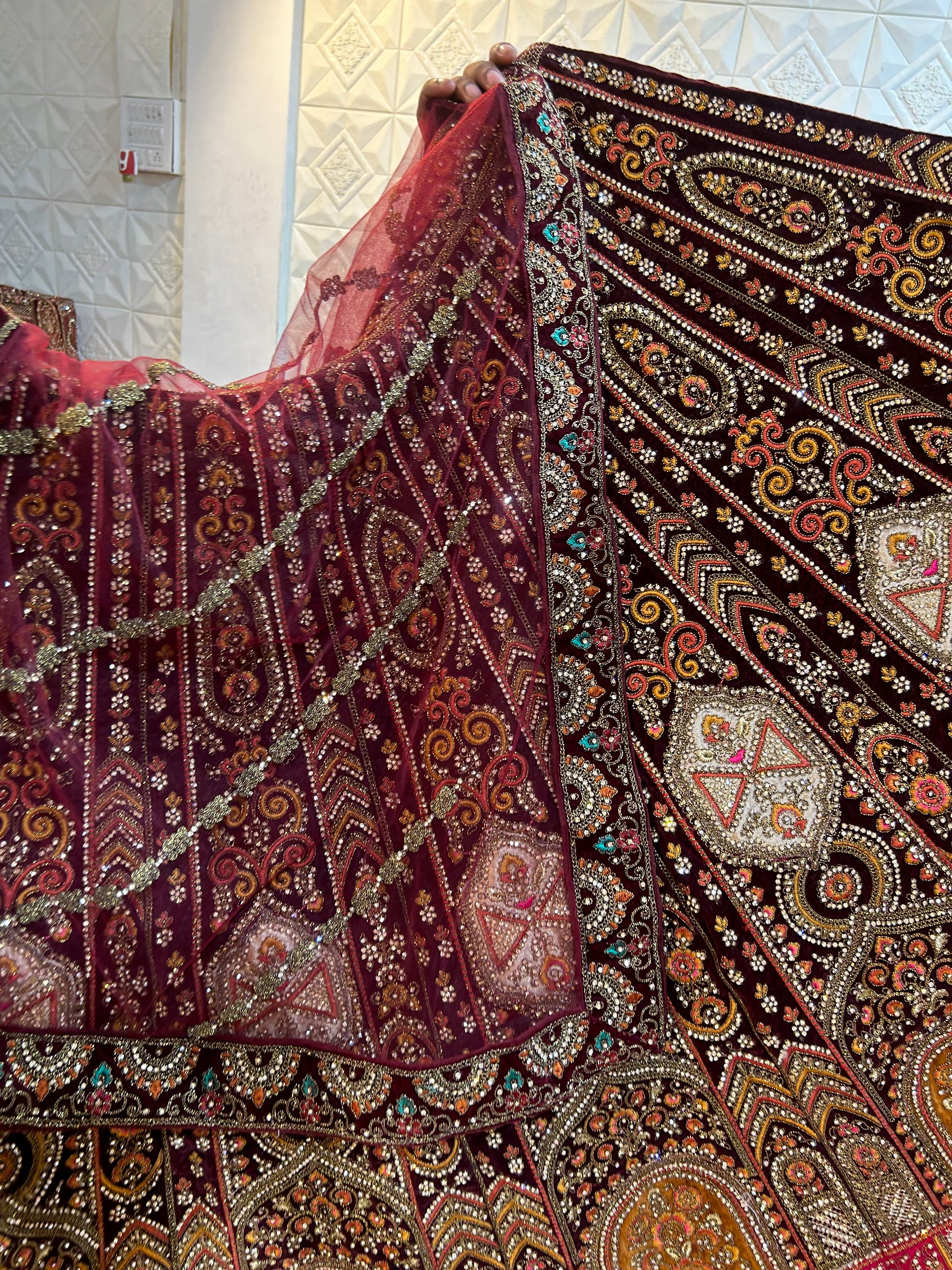 Sequence Dupatta Maroon Heavy bridal Lehenga