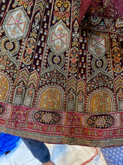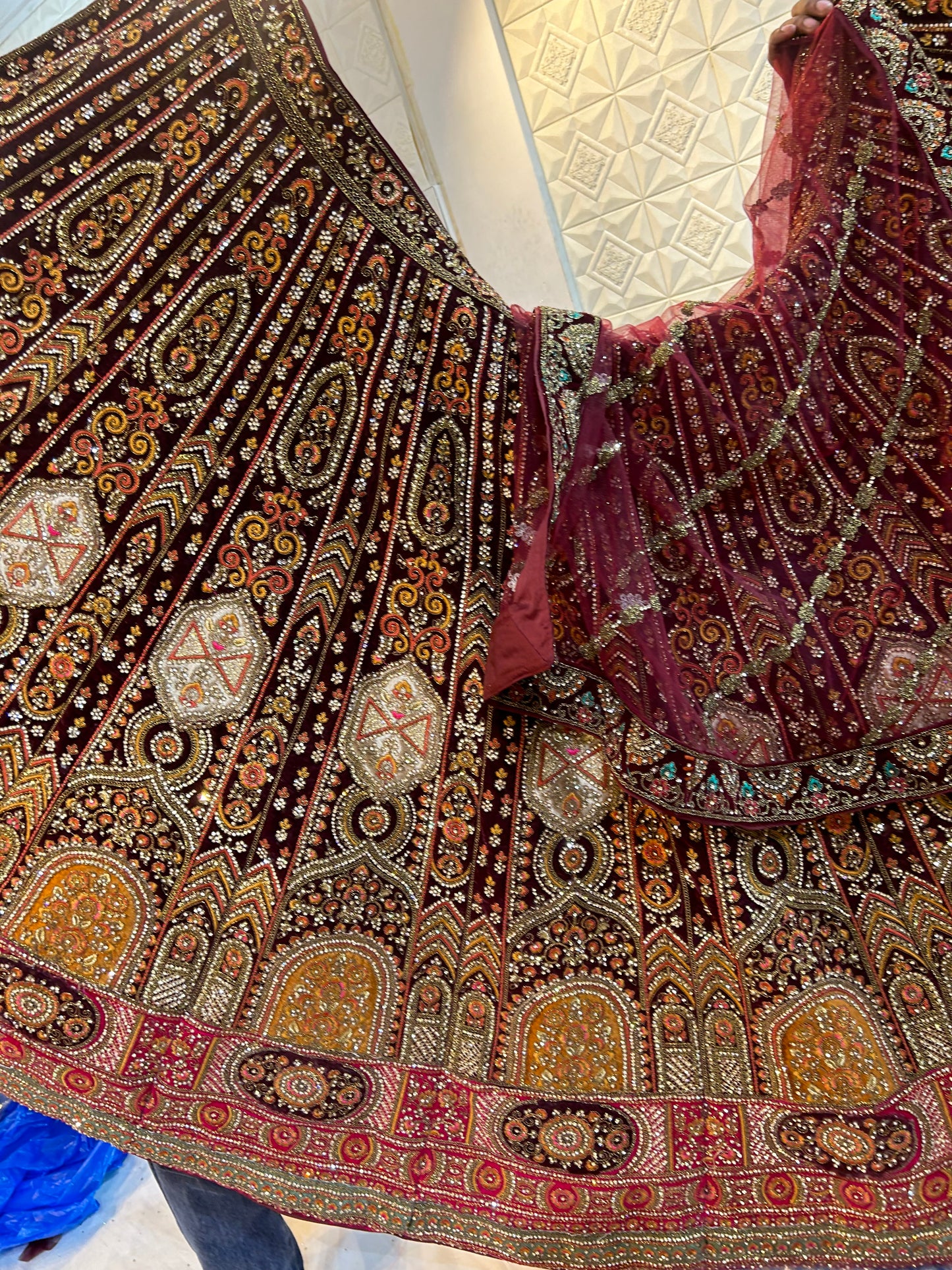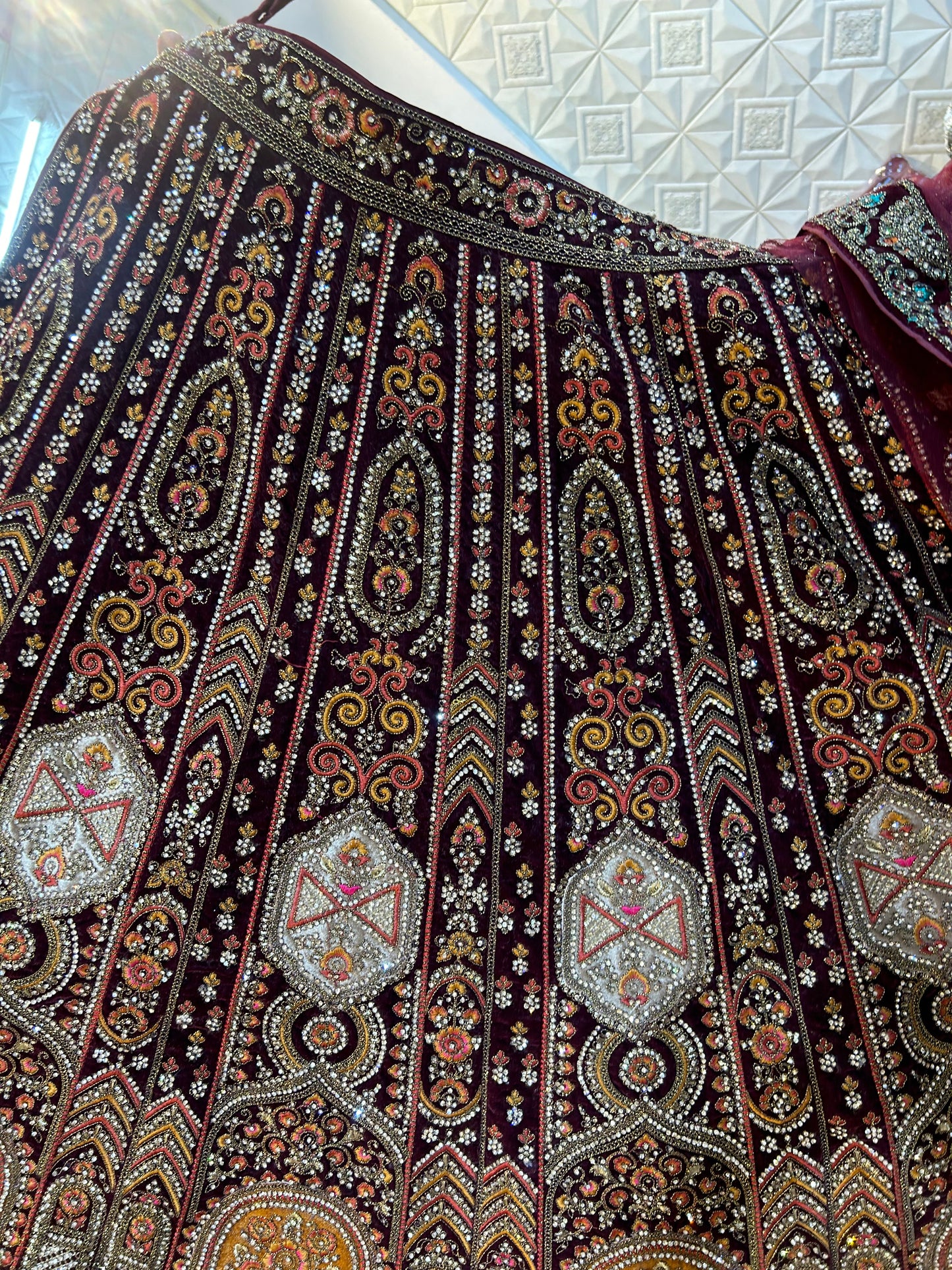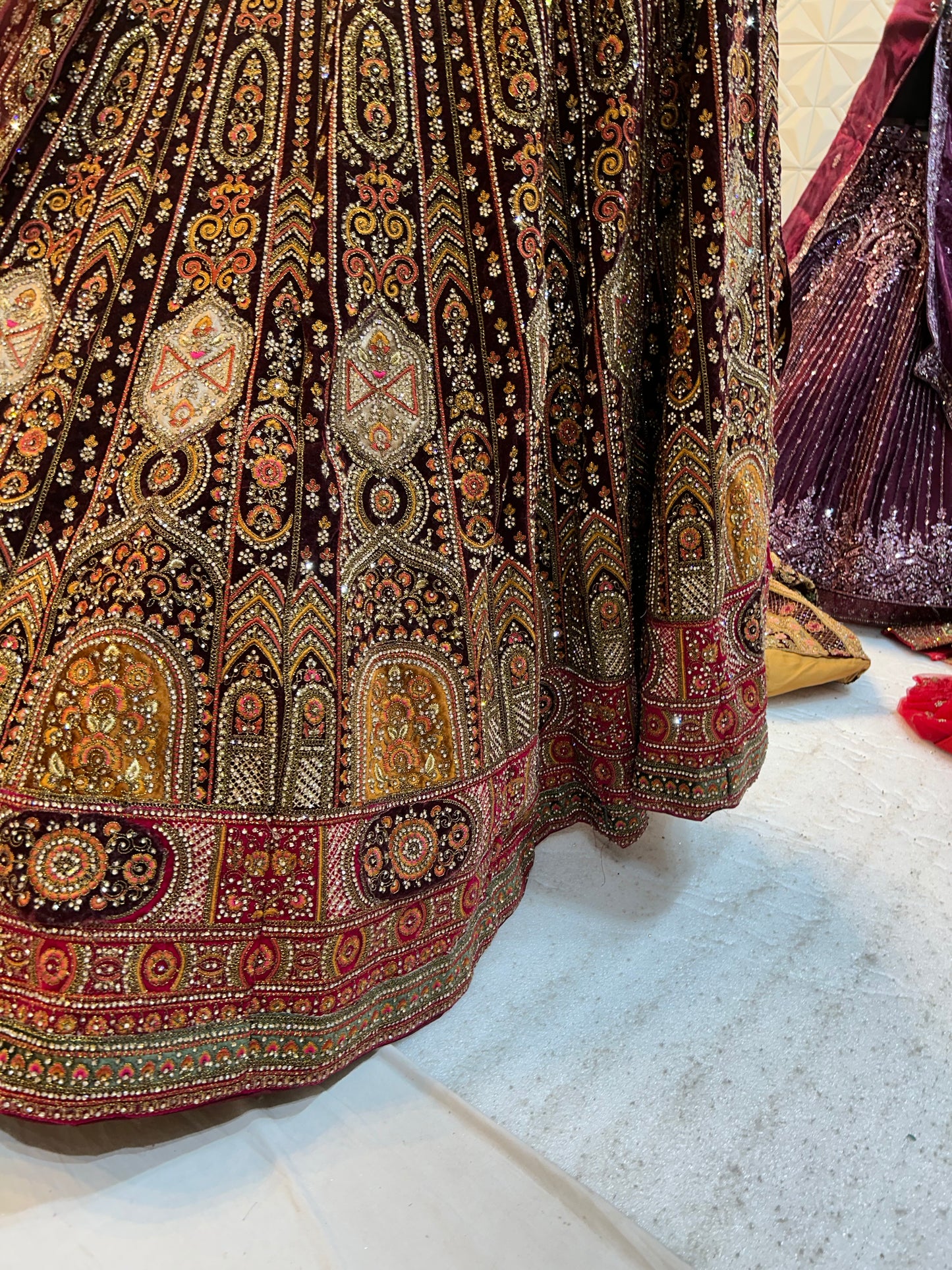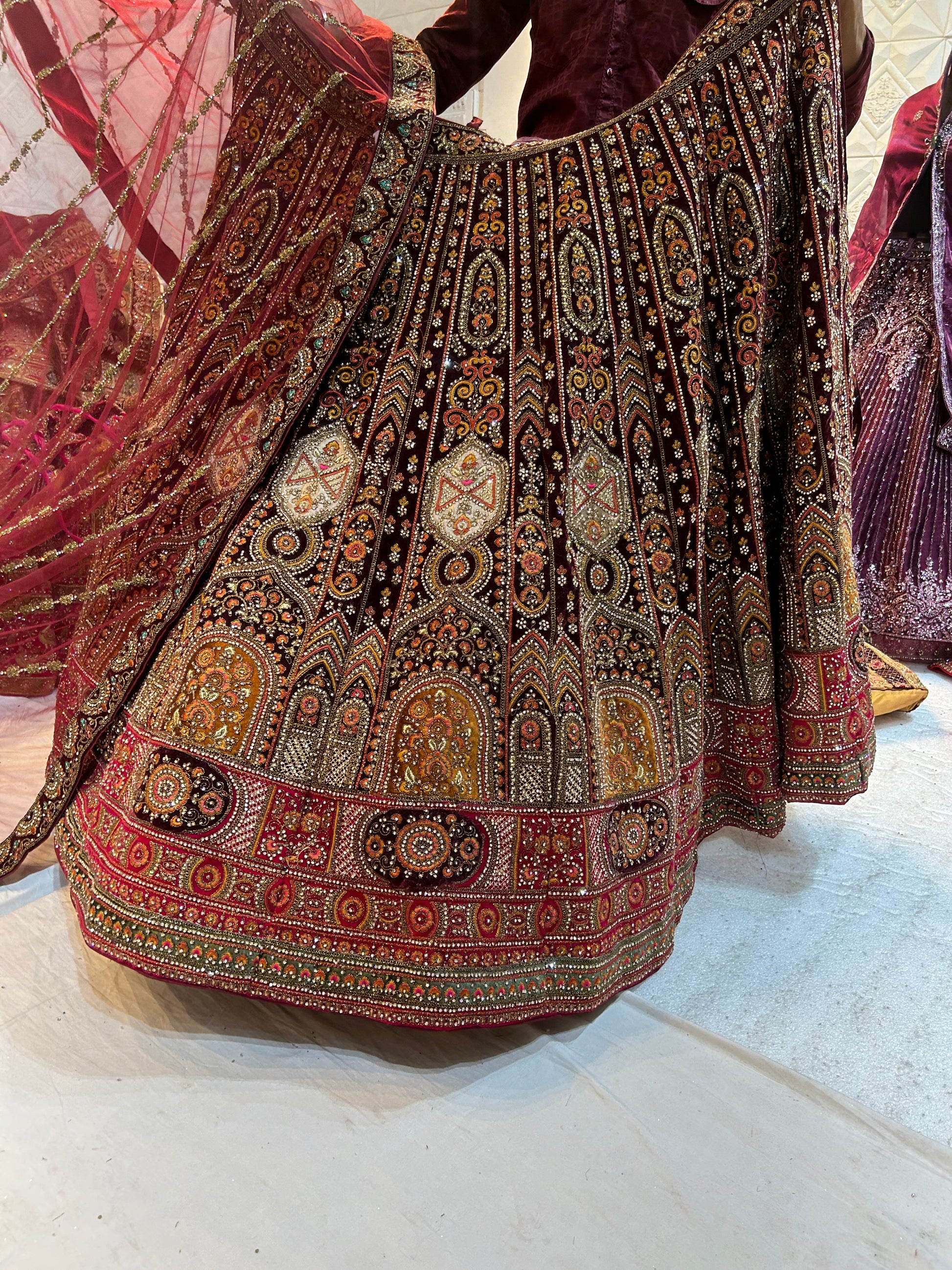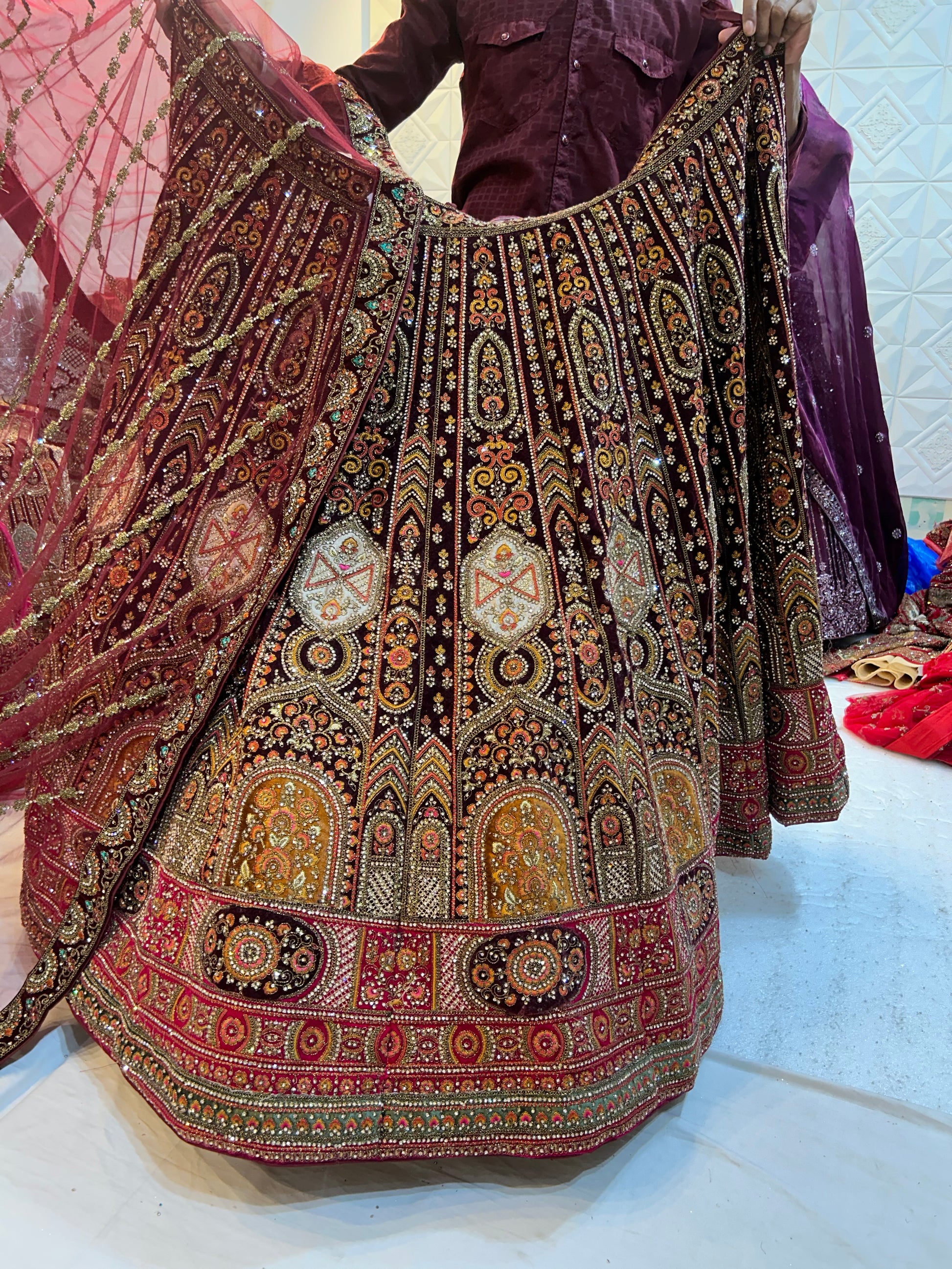 Sequence Dupatta Maroon Heavy bridal Lehenga
