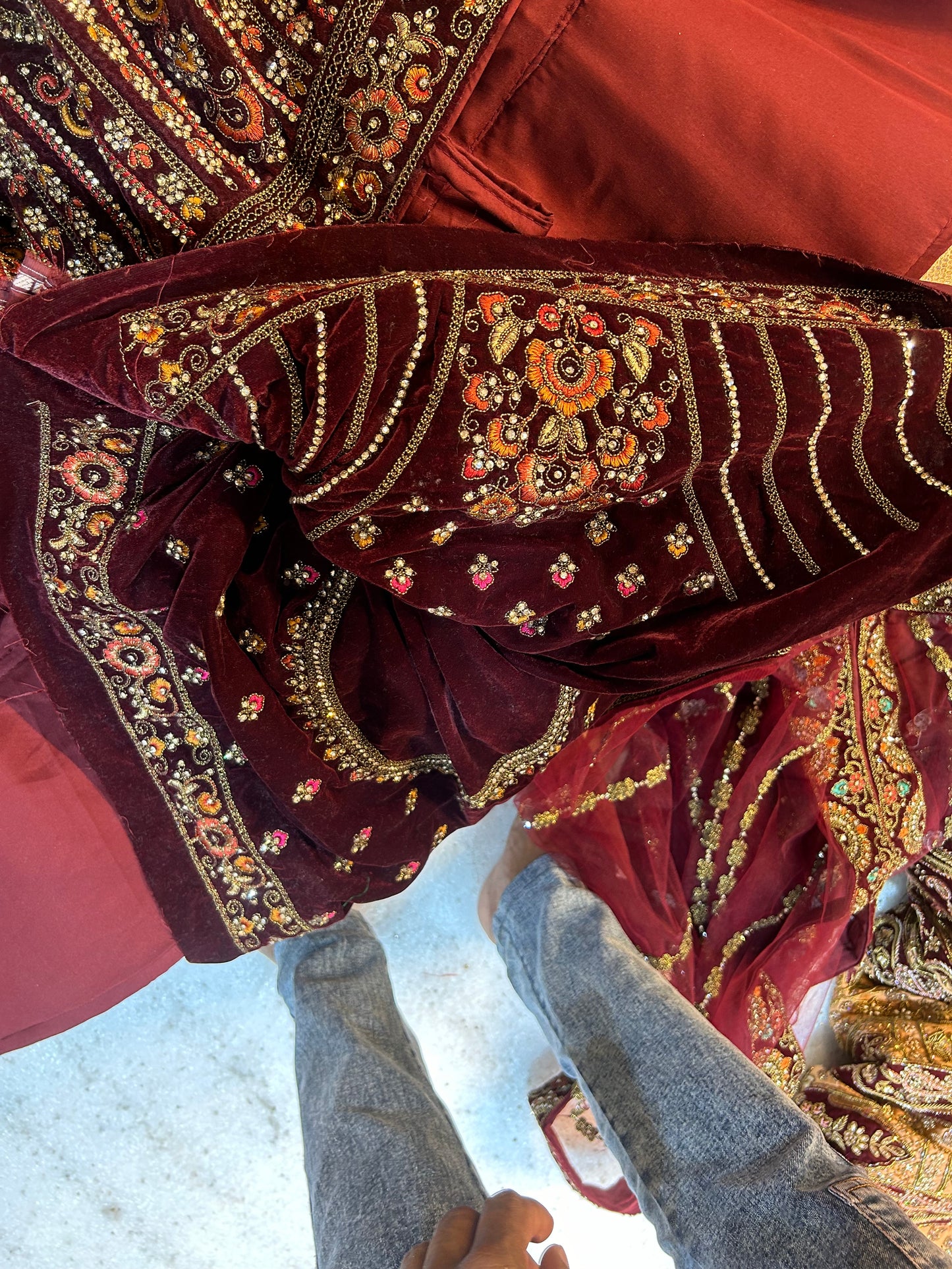Designer jhumka Maroon bridal lehenga ( happy customer)