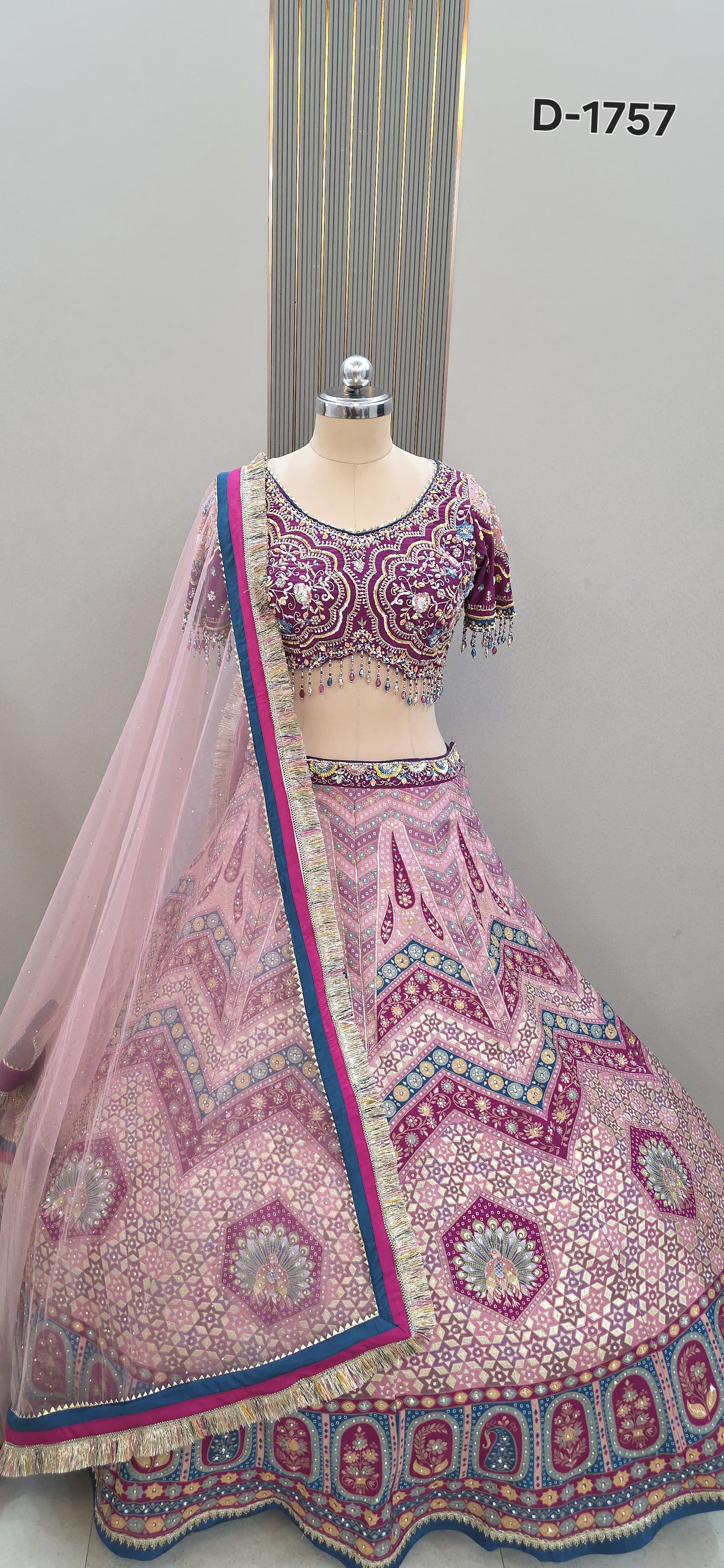 Discover elegance with our Designer Lehenga Collection, perfect for any occasion. These free-size lehengas are thoughtfully designed to accommodate all body types and can be customized to suit your unique style. Crafted to elevate your wardrobe, each lehenga set includes a semi-stitched skirt, unstitched blouse fabric (choli), and a matching chunni (dupatta), making it an ideal choice for weddings, festivals, and special celebrations.