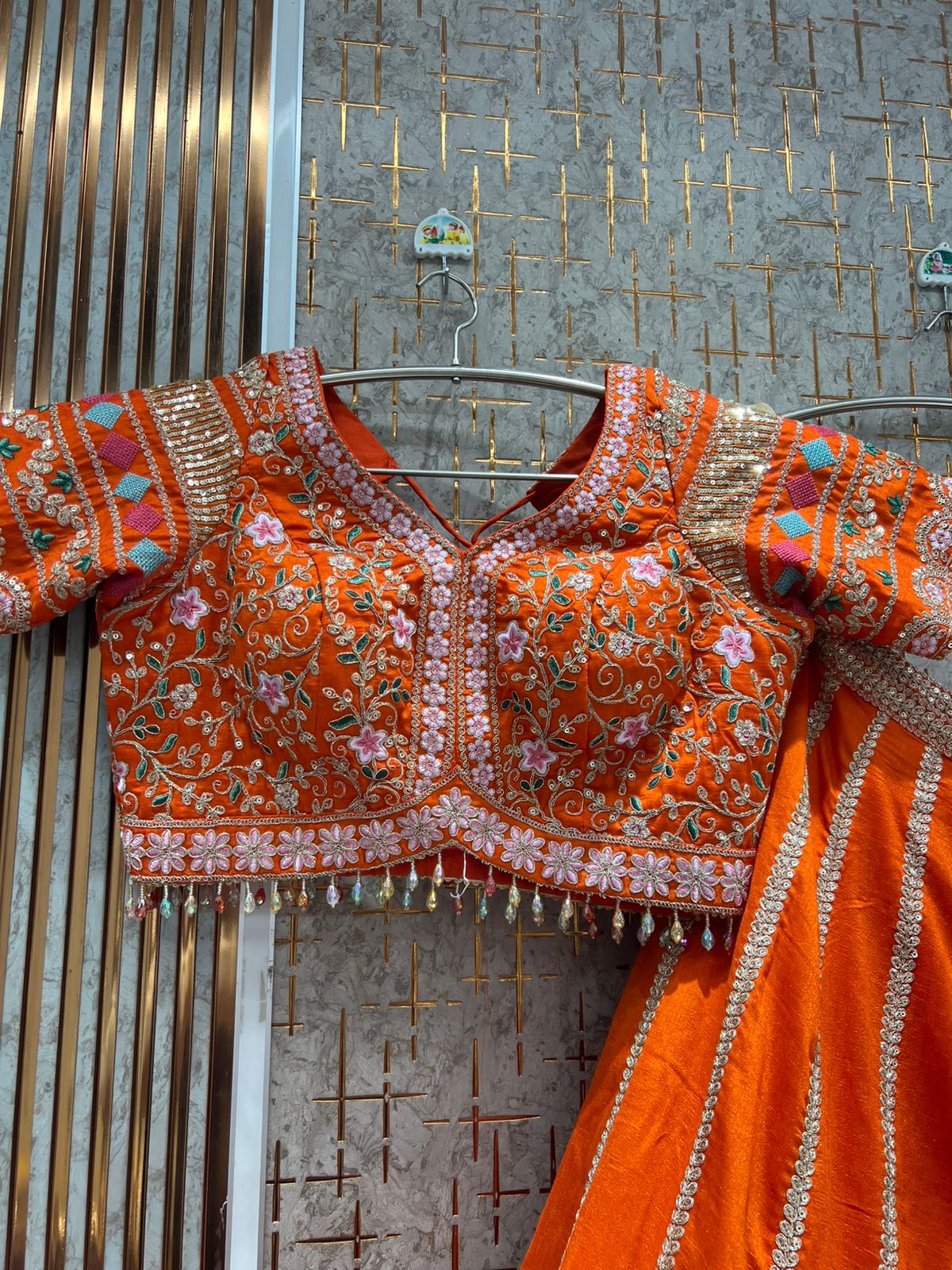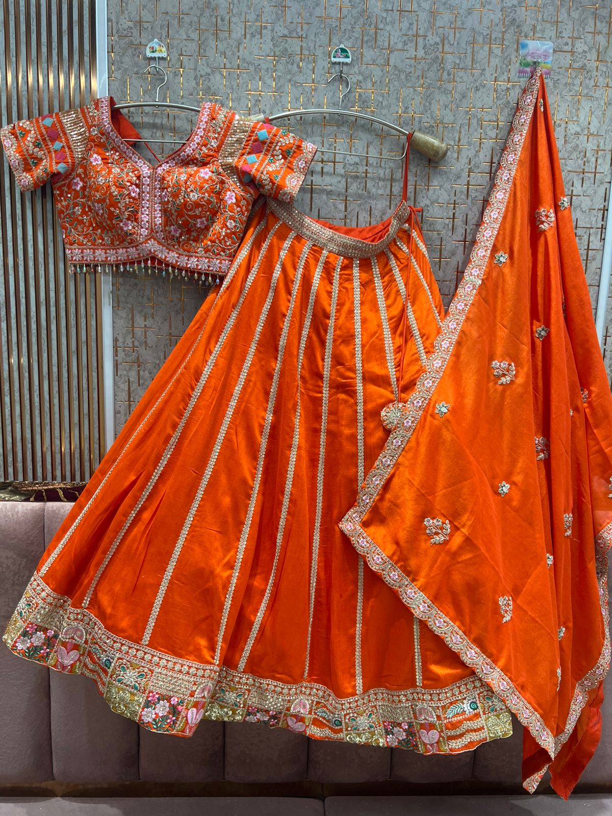 Discover elegance with our Designer Lehenga Collection, perfect for any occasion. These free-size lehengas are thoughtfully designed to accommodate all body types and can be customized to suit your unique style. Crafted to elevate your wardrobe, each lehenga set includes a semi-stitched skirt, unstitched blouse fabric (choli), and a matching chunni (dupatta), making it an ideal choice for weddings, festivals, and special celebrations.