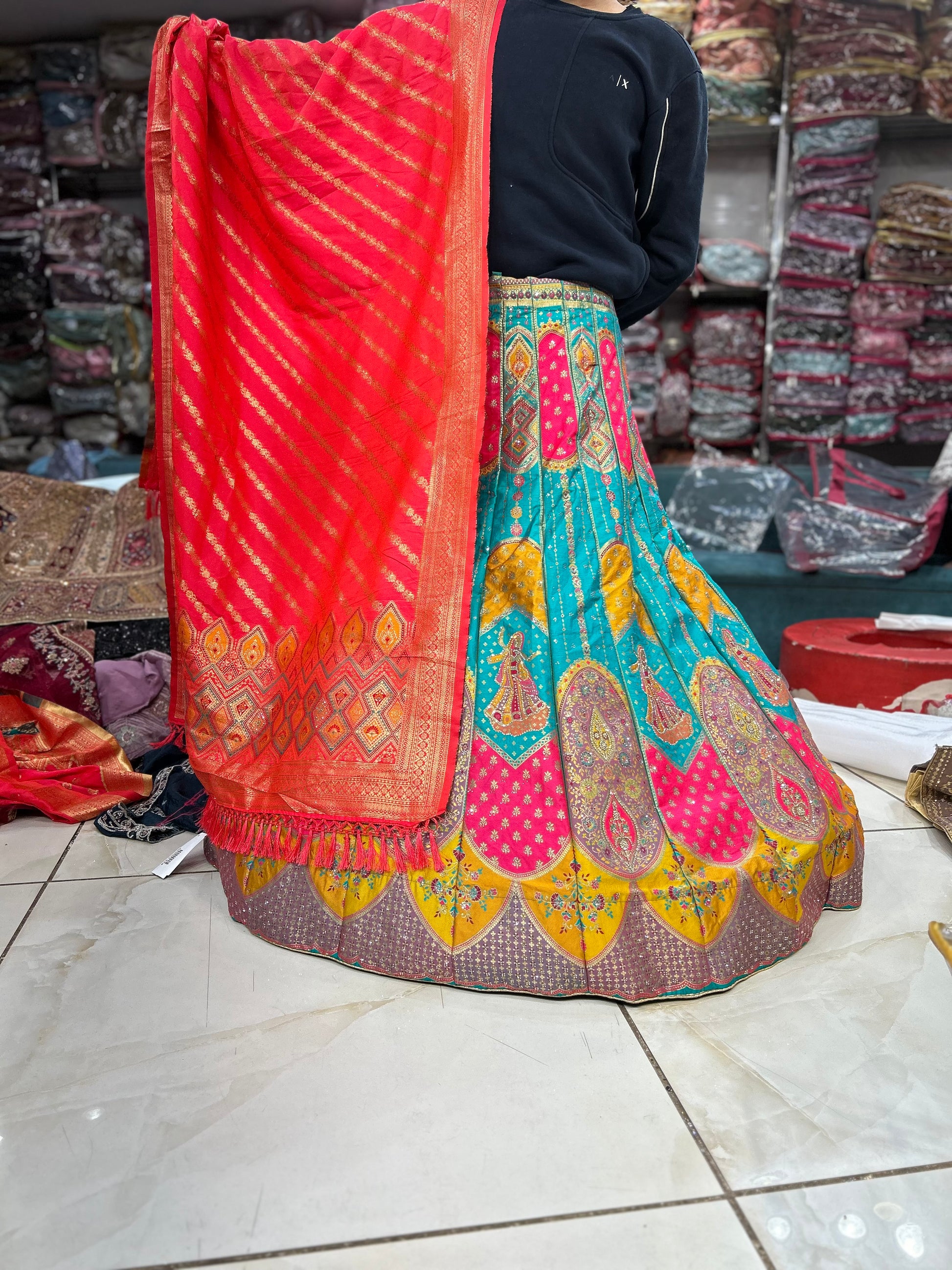 Discover elegance with our Designer Lehenga Collection, perfect for any occasion. These free-size lehengas are thoughtfully designed to accommodate all body types and can be customized to suit your unique style. Crafted to elevate your wardrobe, each lehenga set includes a semi-stitched skirt, unstitched blouse fabric (choli), and a matching chunni (dupatta), making it an ideal choice for weddings, festivals, and special celebrations.