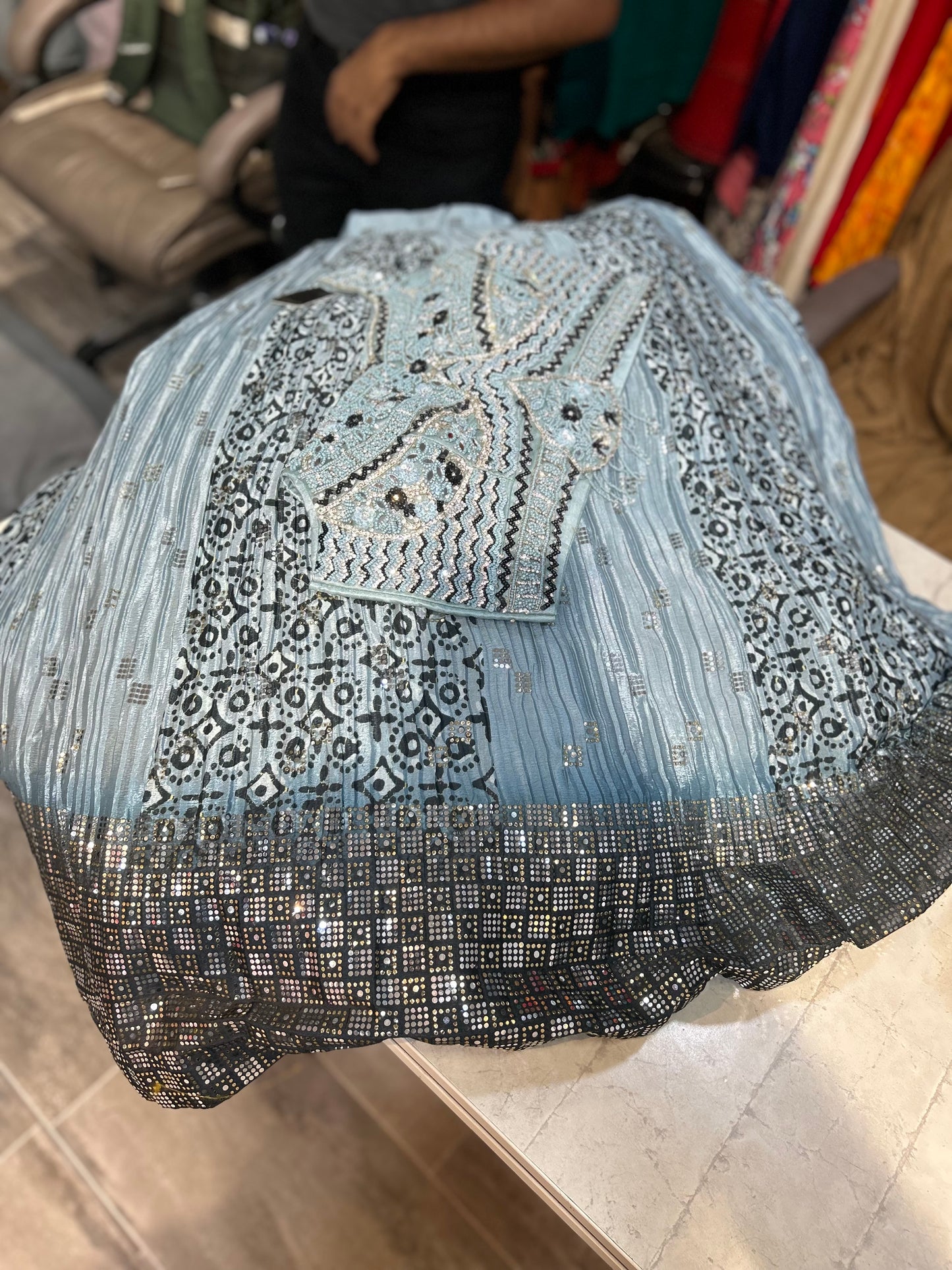 Discover elegance with our Designer Lehenga Collection, perfect for any occasion. These free-size lehengas are thoughtfully designed to accommodate all body types and can be customized to suit your unique style. Crafted to elevate your wardrobe, each lehenga set includes a semi-stitched skirt, unstitched blouse fabric (choli), and a matching chunni (dupatta), making it an ideal choice for weddings, festivals, and special celebrations.