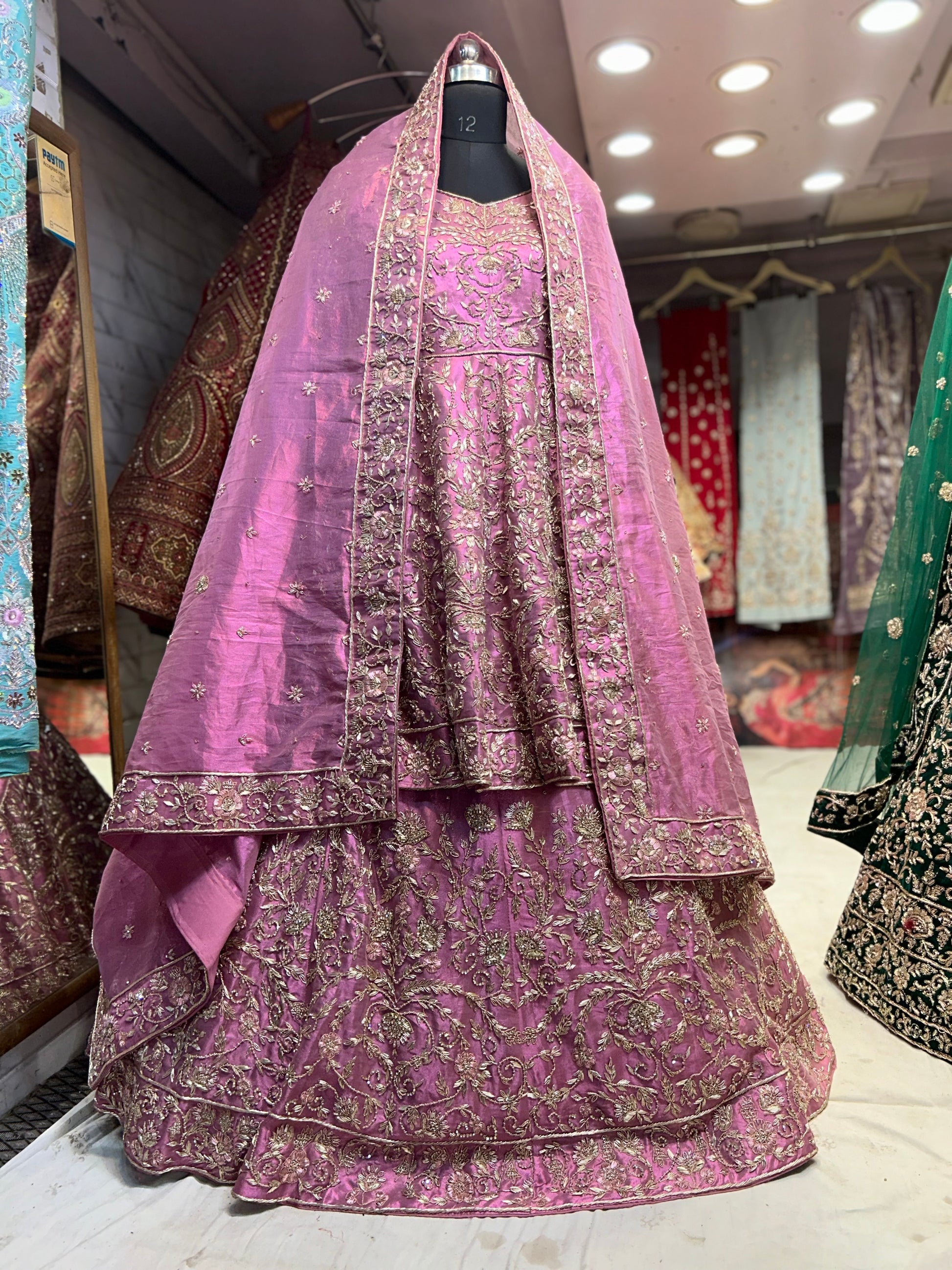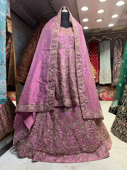 Stunning Handmade Zardozi Dabka pink full dress lehenga