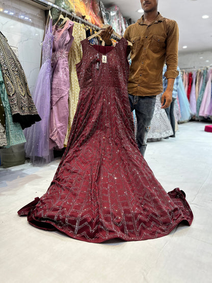 Discover elegance with our Designer Gown Collection, perfect for every special occasion. These free-size gowns are Designed to enhance your wardrobe, gown features intricate embroidery, luxurious fabrics, and a flattering silhouette, making it an ideal choice for weddings, cocktail parties, receptions, and festive celebrations.