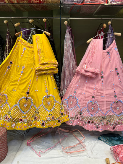 Discover elegance with our Designer Lehenga Collection, perfect for any occasion. These free-size lehengas are thoughtfully designed to accommodate all body types and can be customized to suit your unique style. Crafted to elevate your wardrobe, each lehenga set includes a semi-stitched skirt, unstitched blouse fabric (choli), and a matching chunni (dupatta), making it an ideal choice for weddings, festivals, and special celebrations.